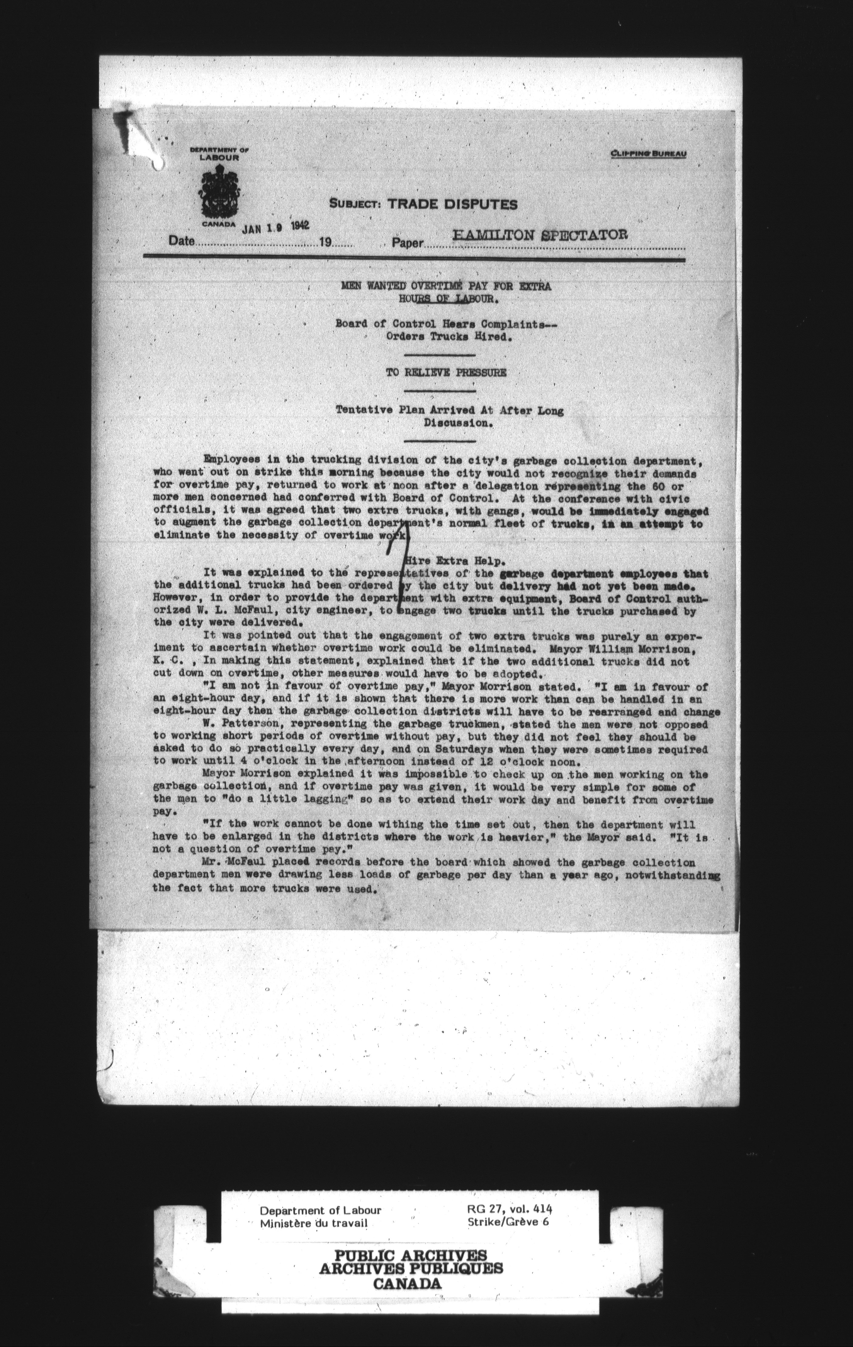Department of Labour, Economics and Research Branch : Strikes and lockout files - 3021