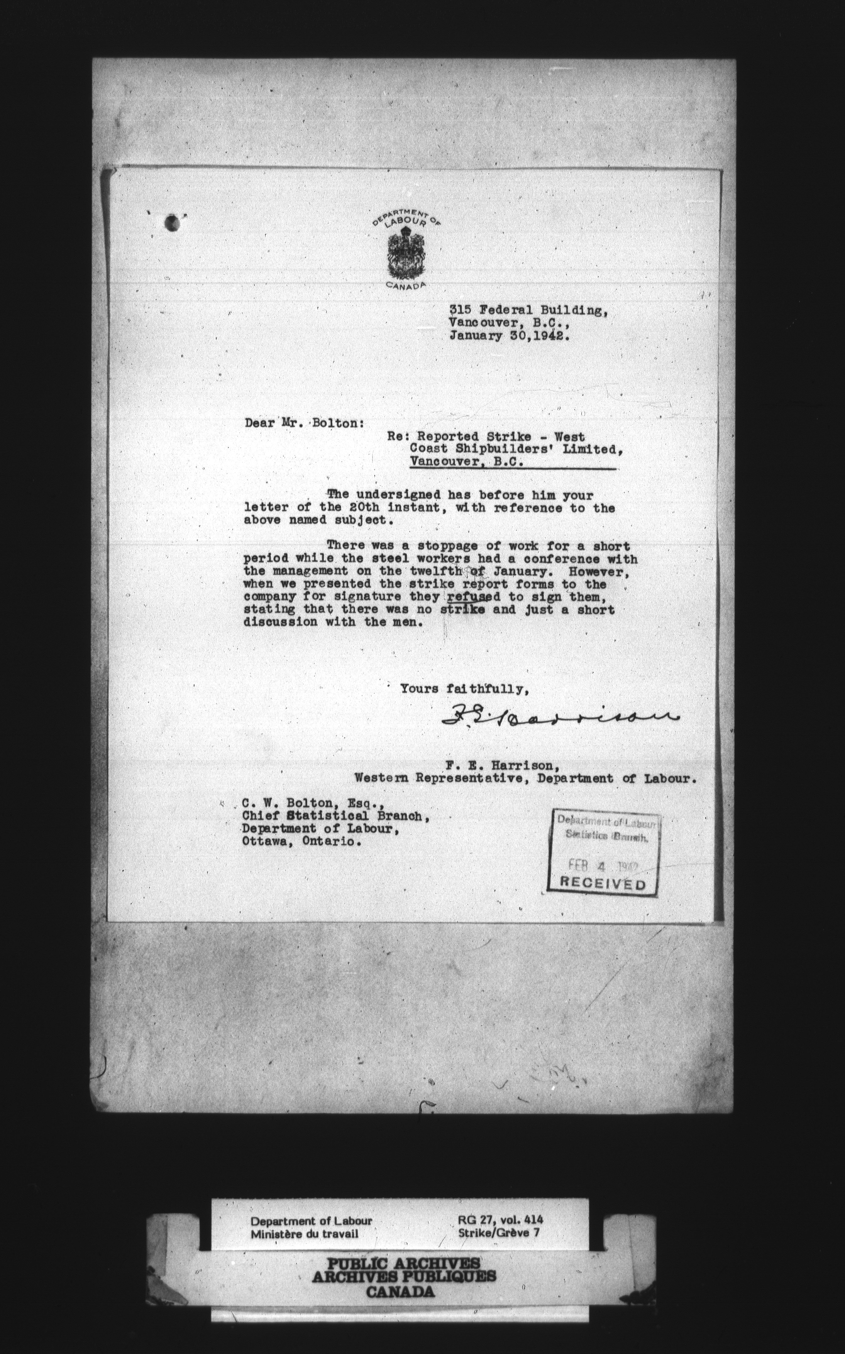 Department of Labour, Economics and Research Branch : Strikes and lockout files - 3021