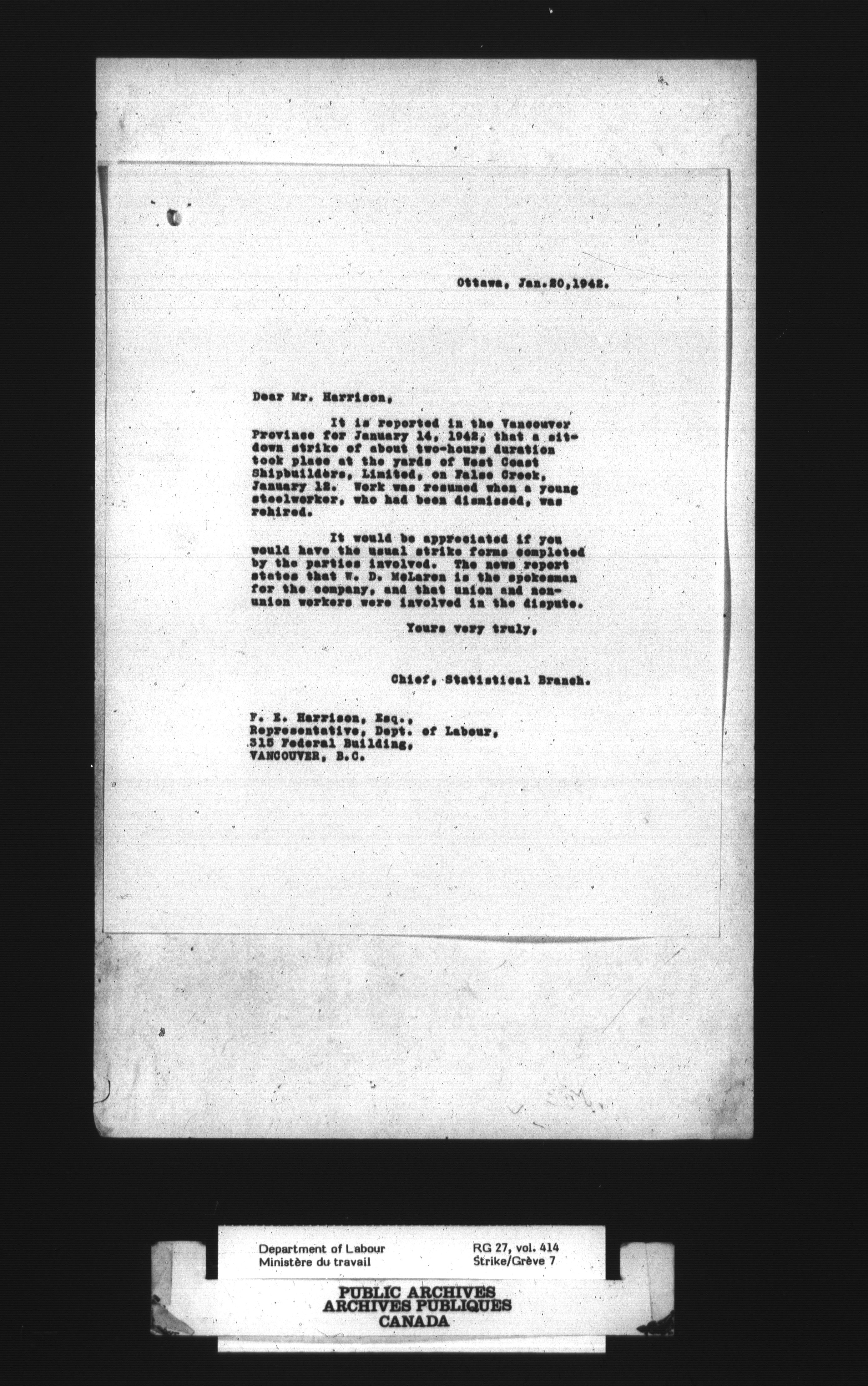 Department of Labour, Economics and Research Branch : Strikes and lockout files - 3021