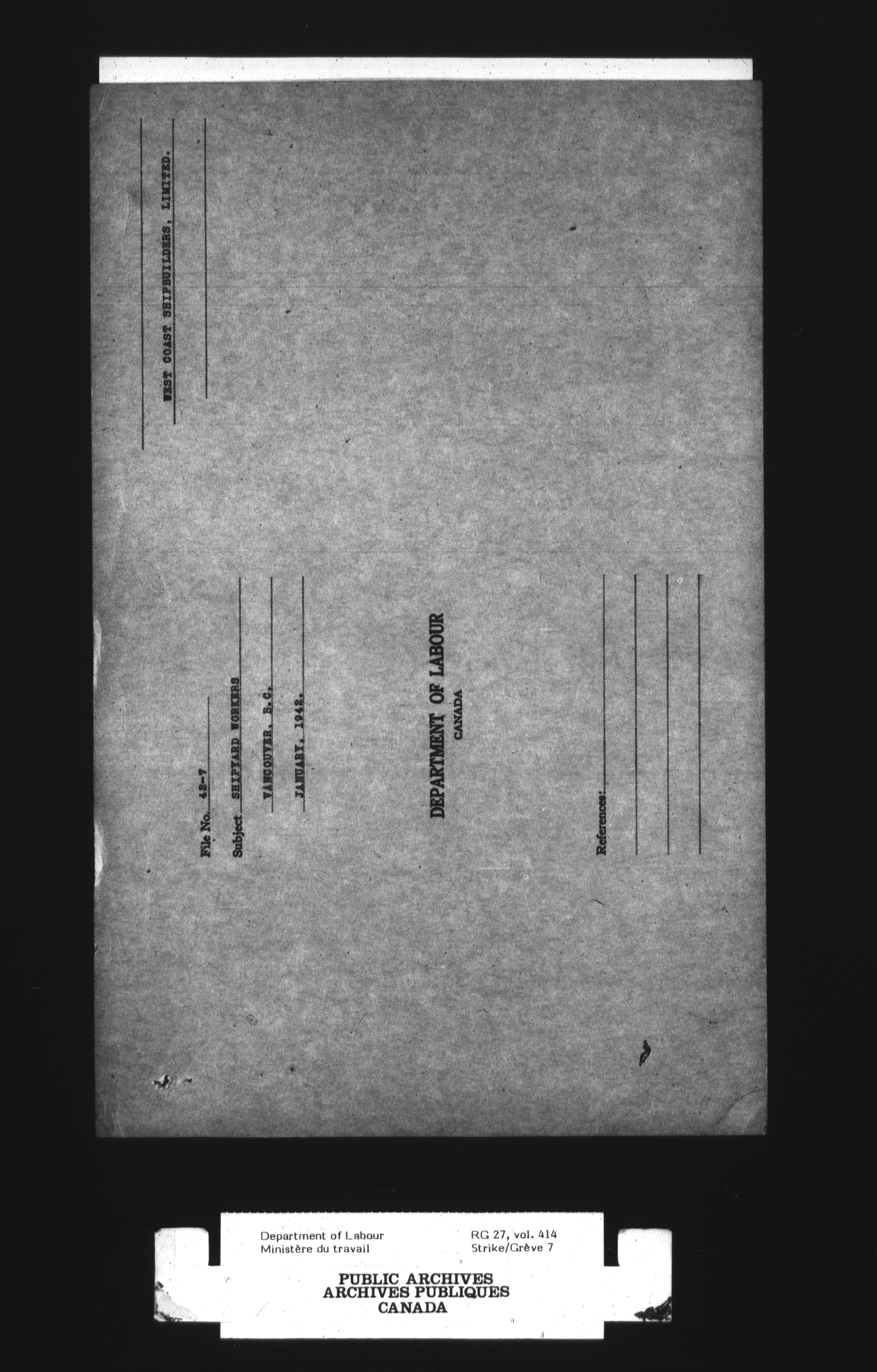 Department of Labour, Economics and Research Branch : Strikes and lockout files - 3021