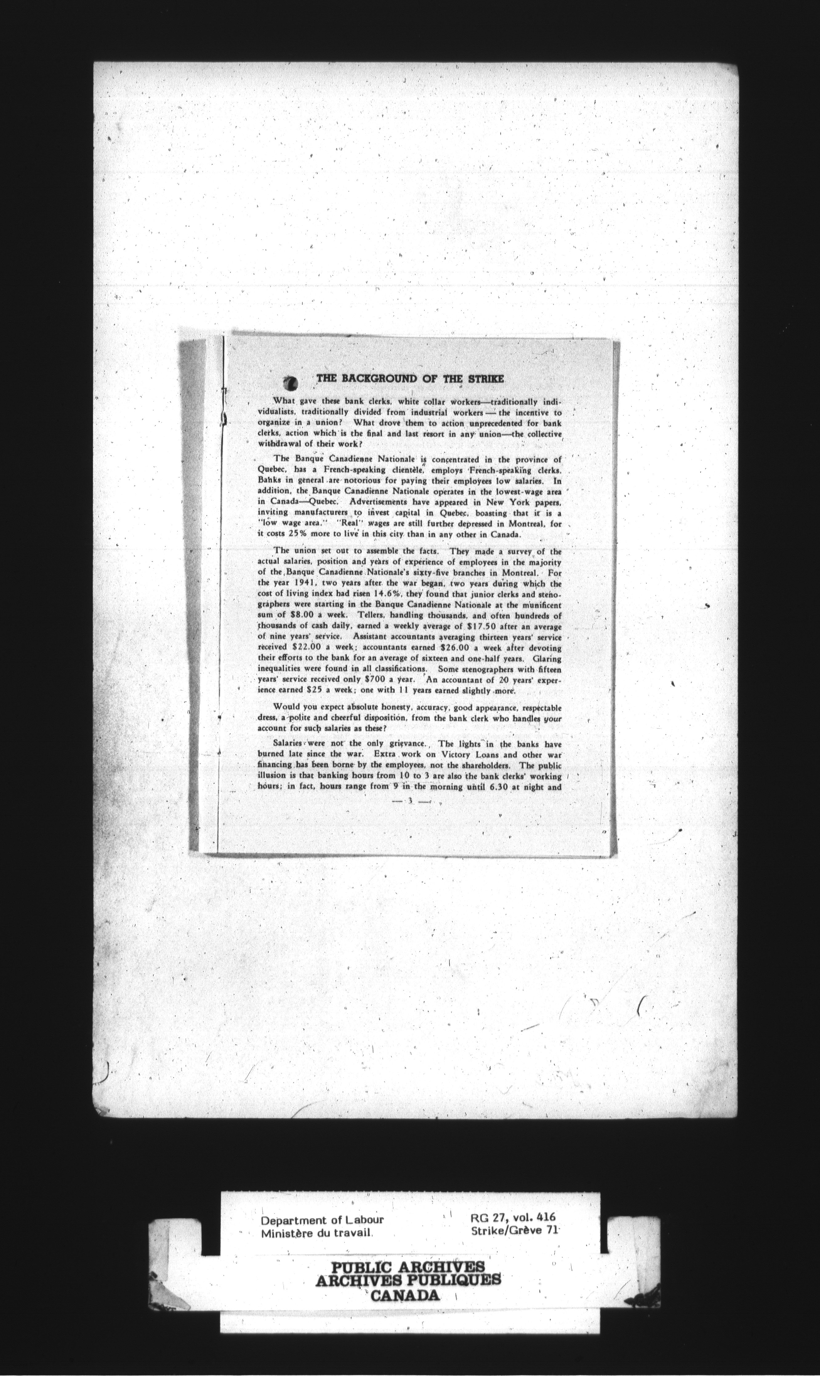 Department of Labour, Economics and Research Branch : Strikes and lockout files - 3022