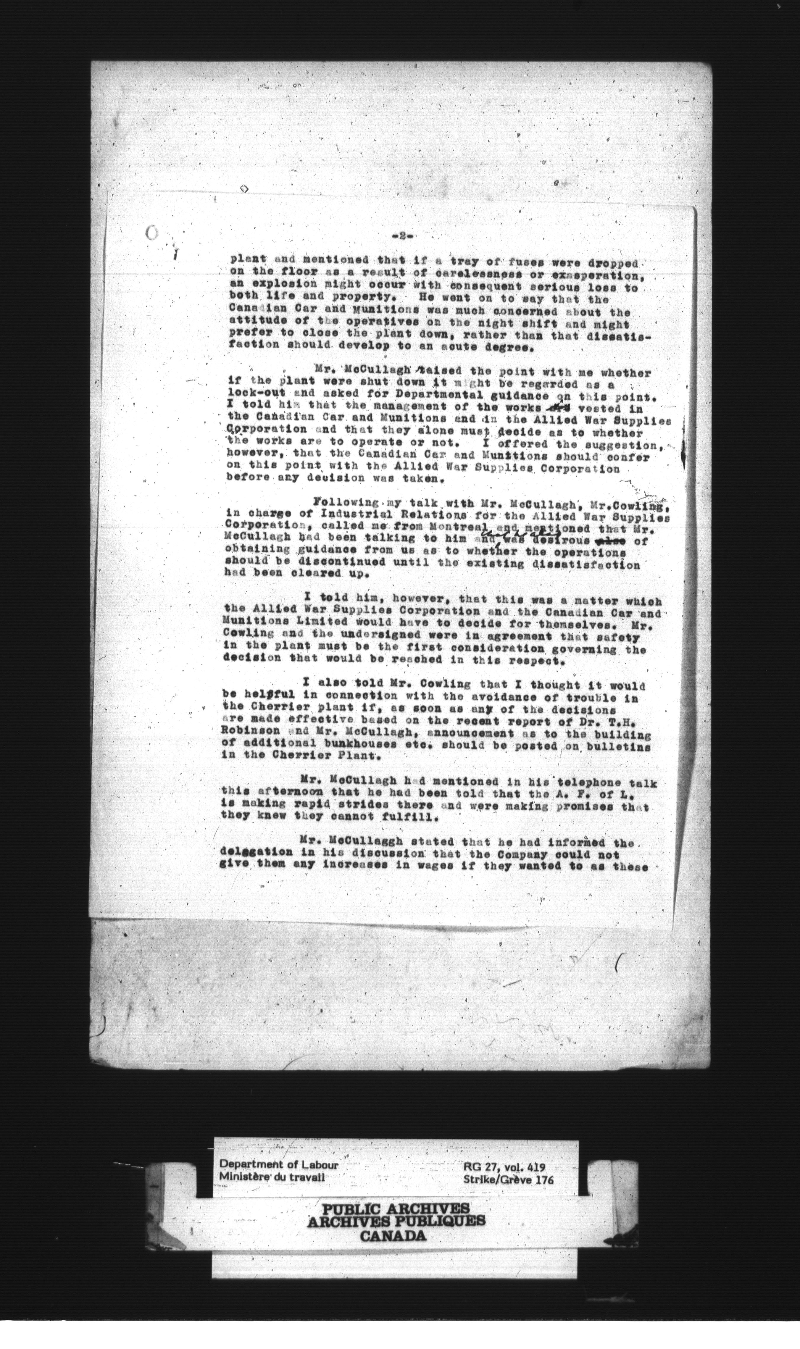 Department of Labour, Economics and Research Branch : Strikes and lockout files - 3024