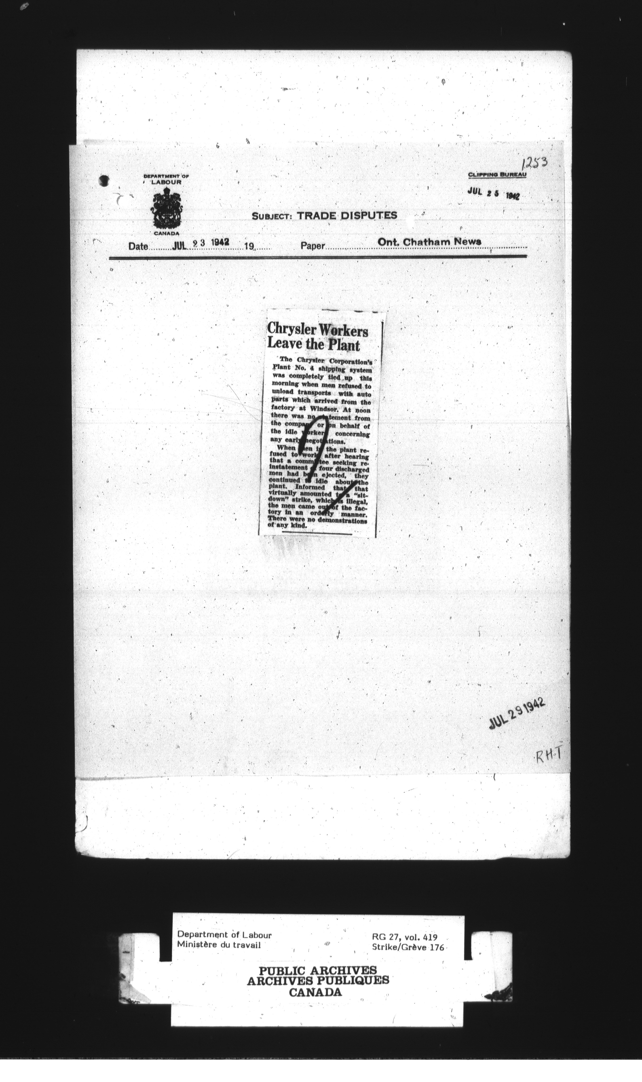 Department of Labour, Economics and Research Branch : Strikes and lockout files - 3024