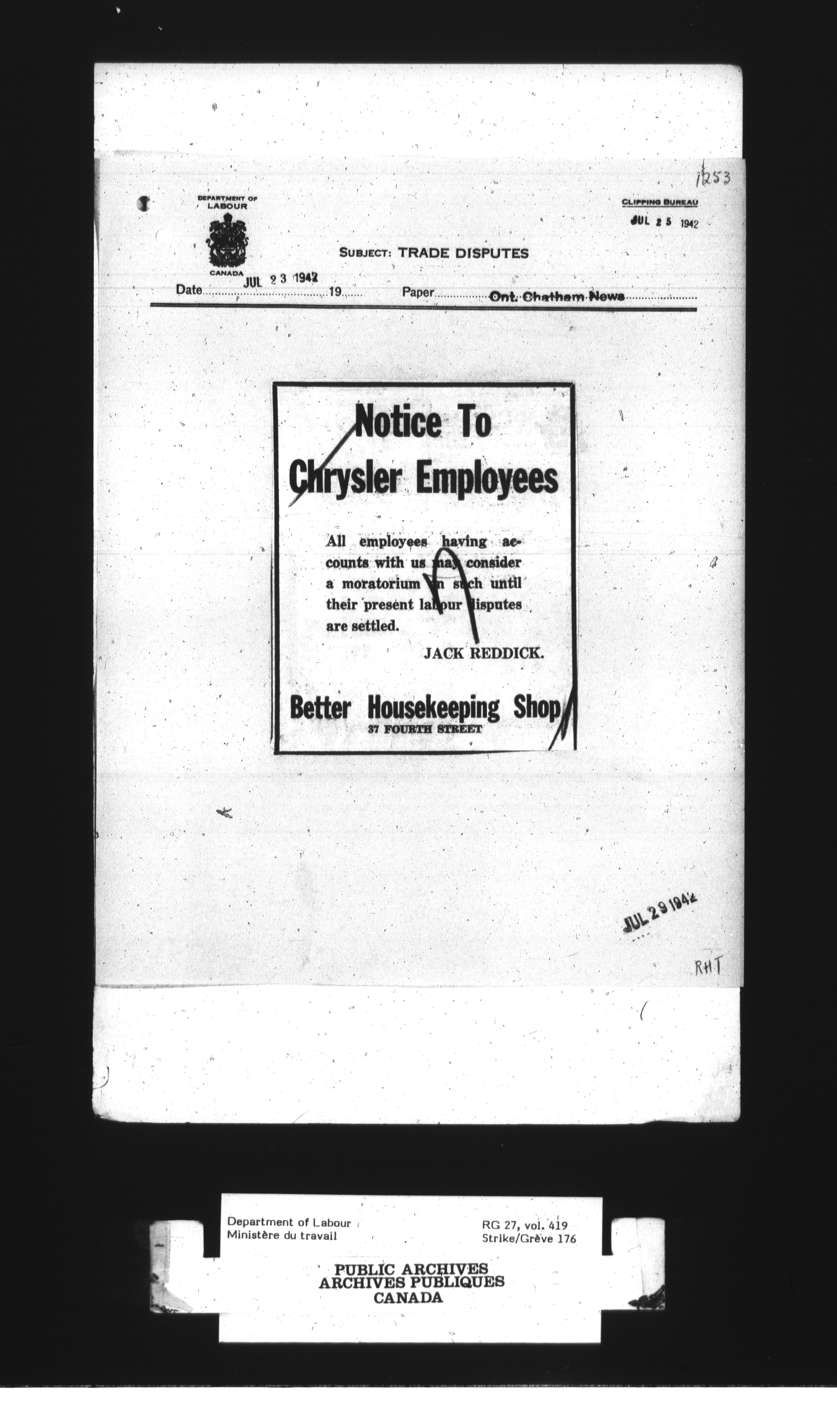 Department of Labour, Economics and Research Branch : Strikes and lockout files - 3024