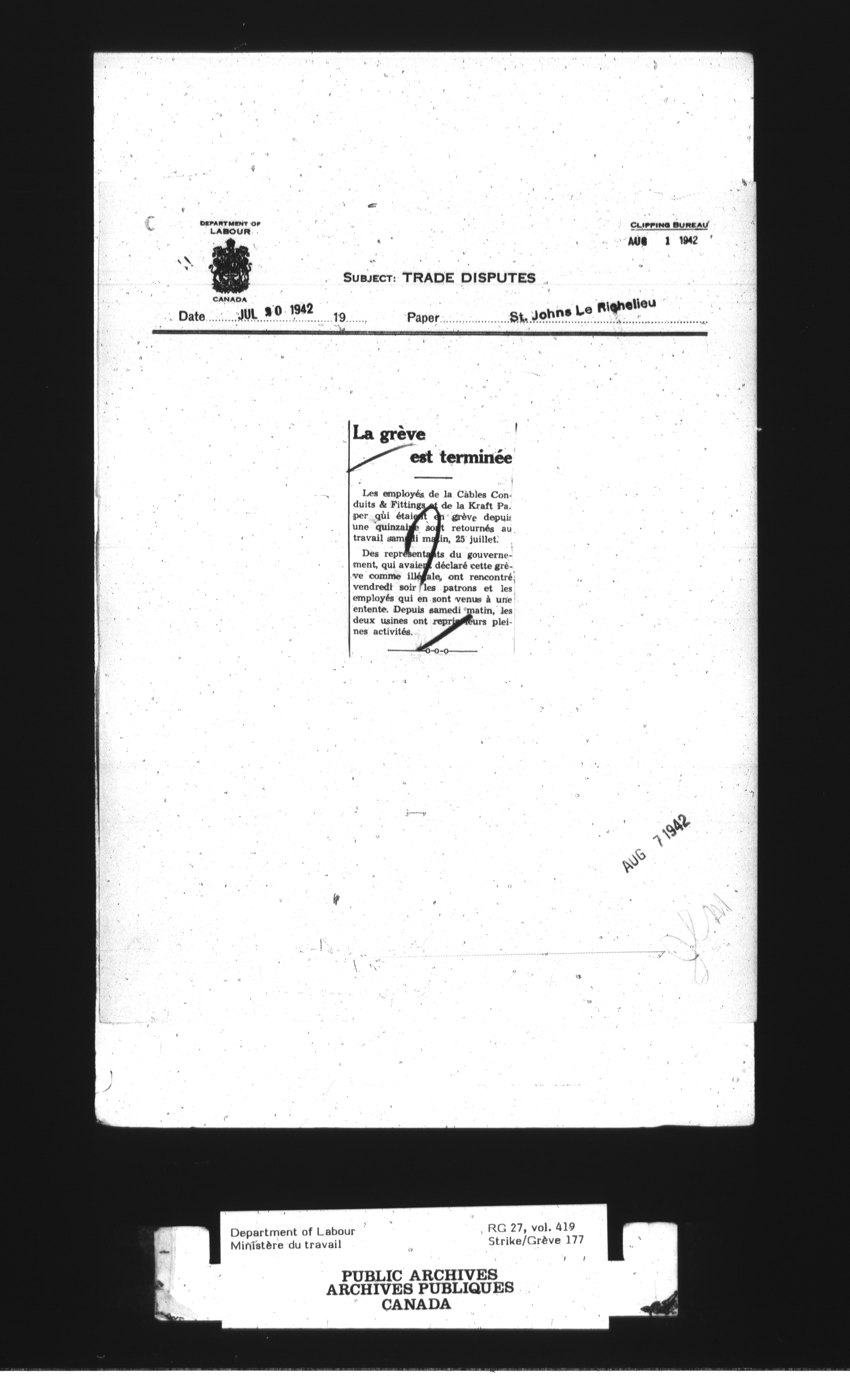 Department of Labour, Economics and Research Branch : Strikes and lockout files - 3024