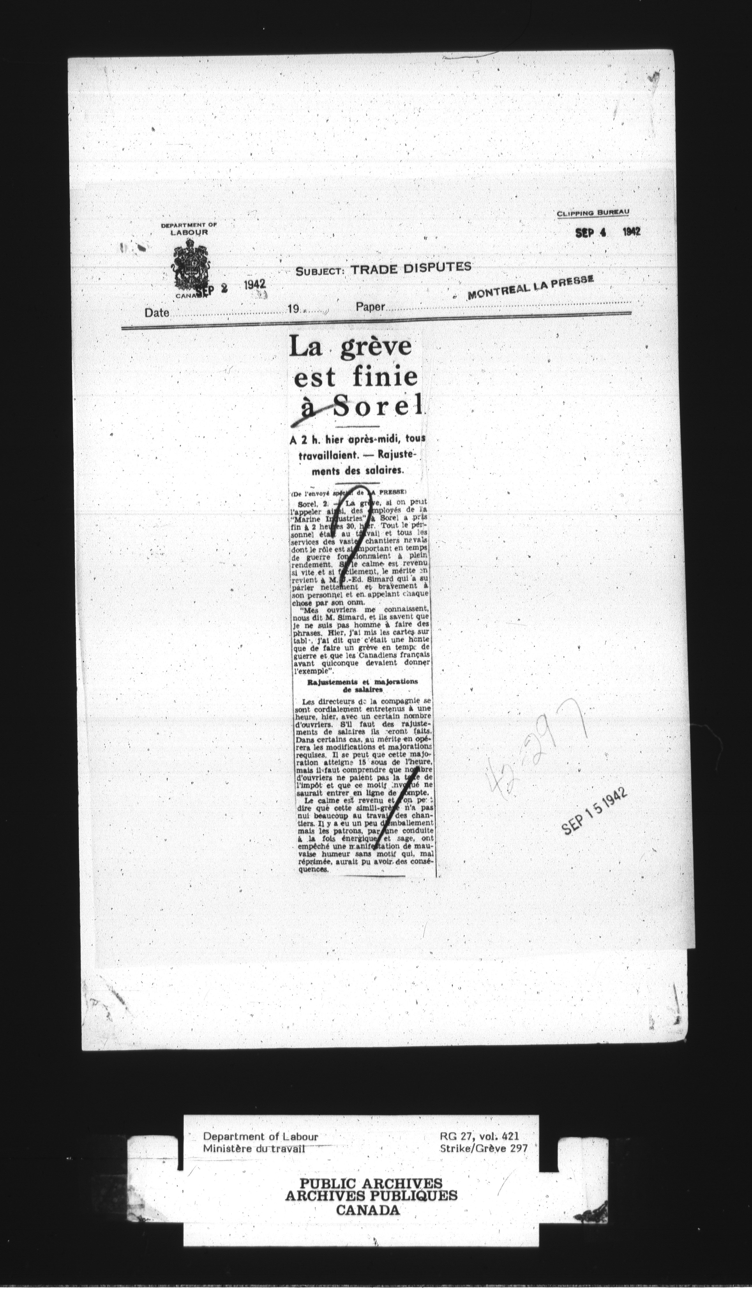 Department of Labour, Economics and Research Branch : Strikes and lockout files : T-3026