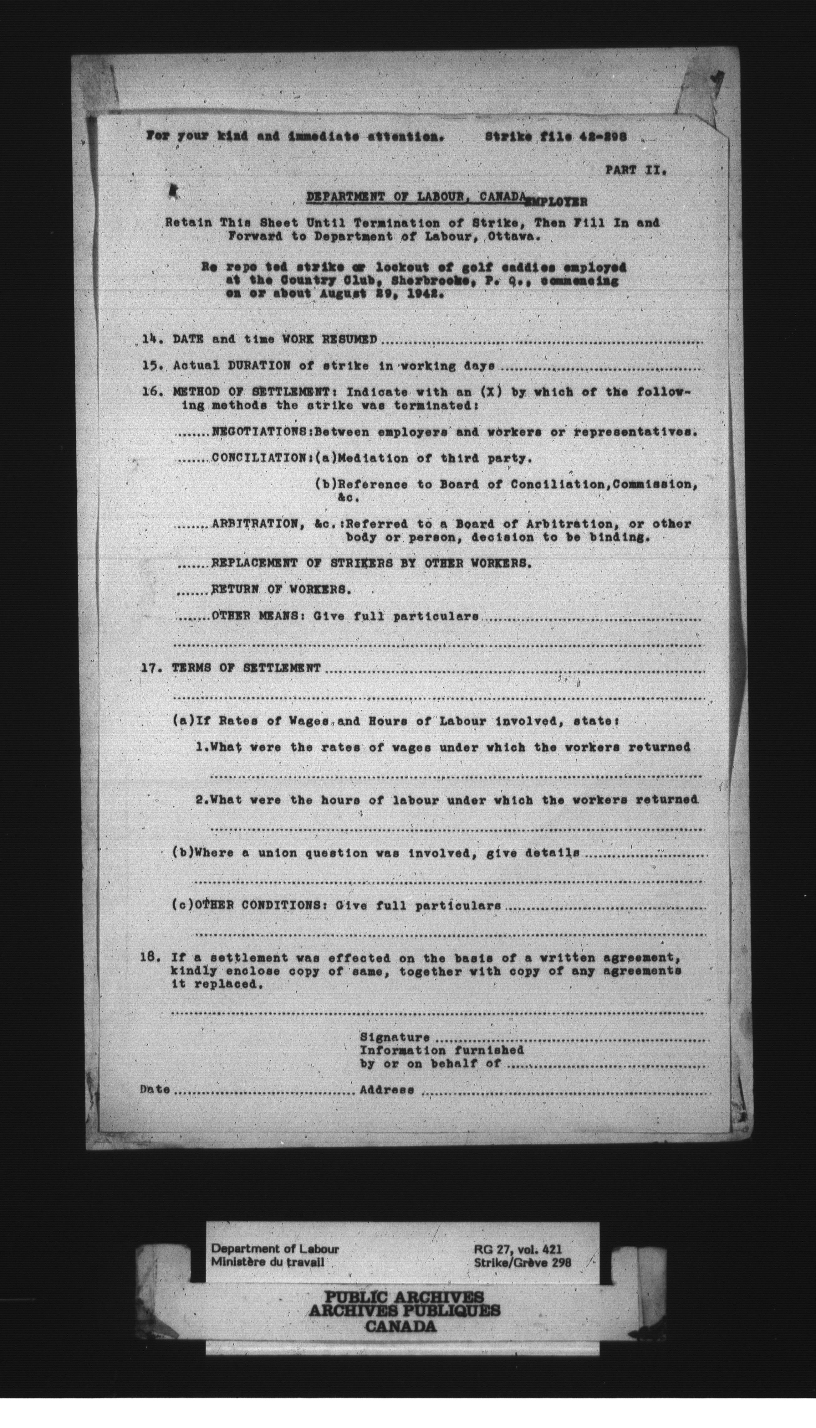 Department of Labour, Economics and Research Branch : Strikes and lockout files : T-3026