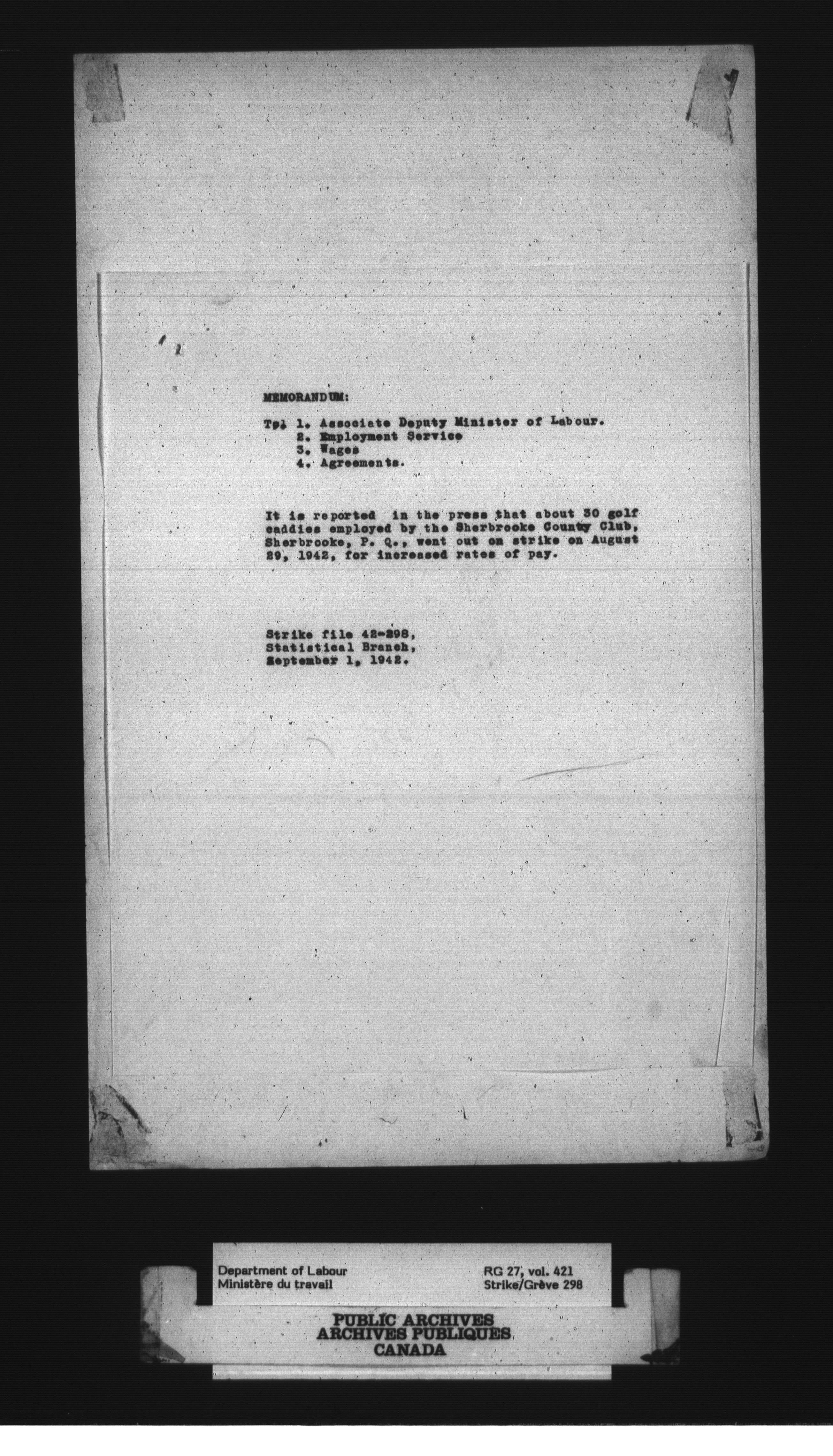 Department of Labour, Economics and Research Branch : Strikes and lockout files - 3026