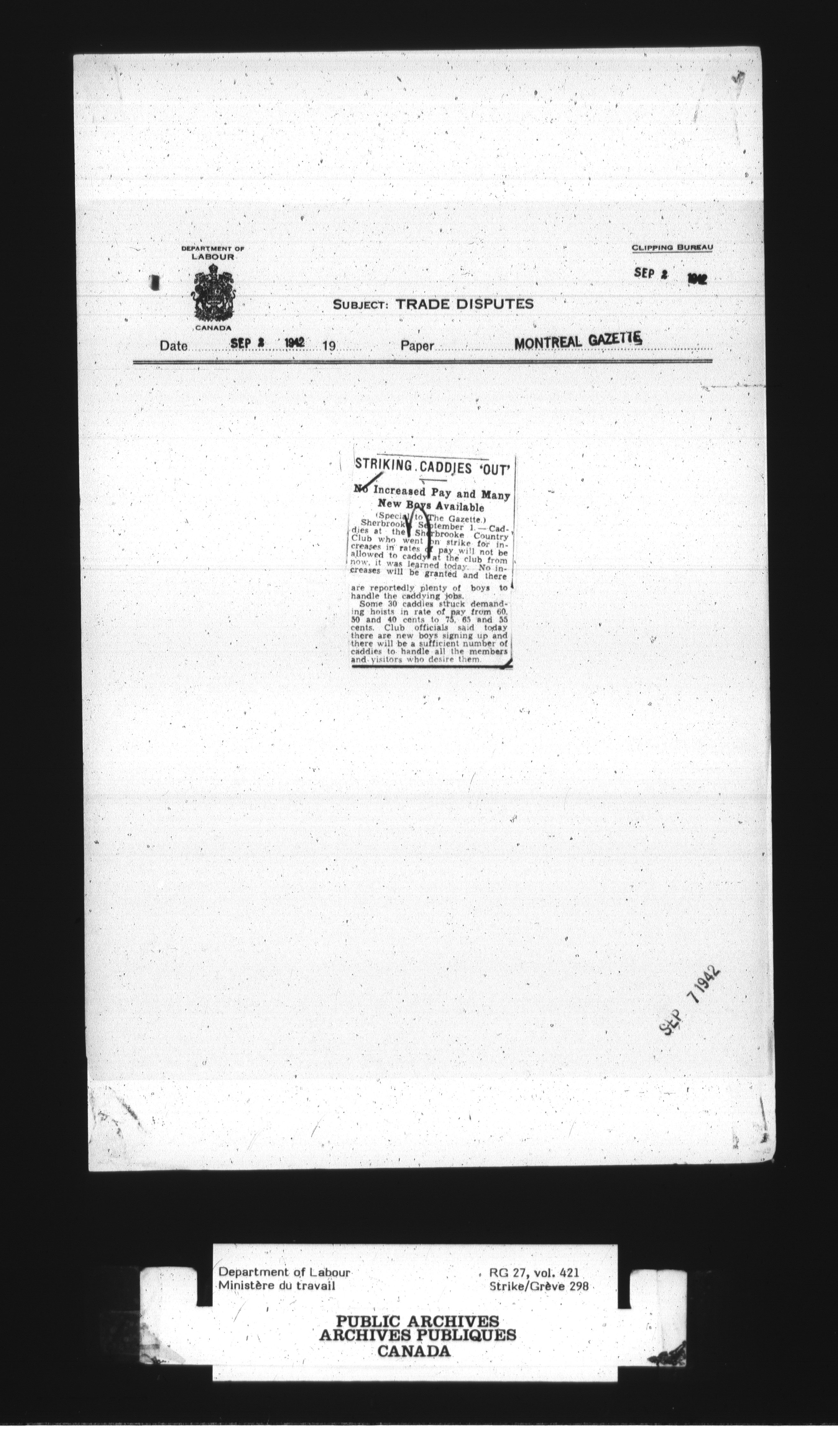 Department of Labour, Economics and Research Branch : Strikes and lockout files : T-3026