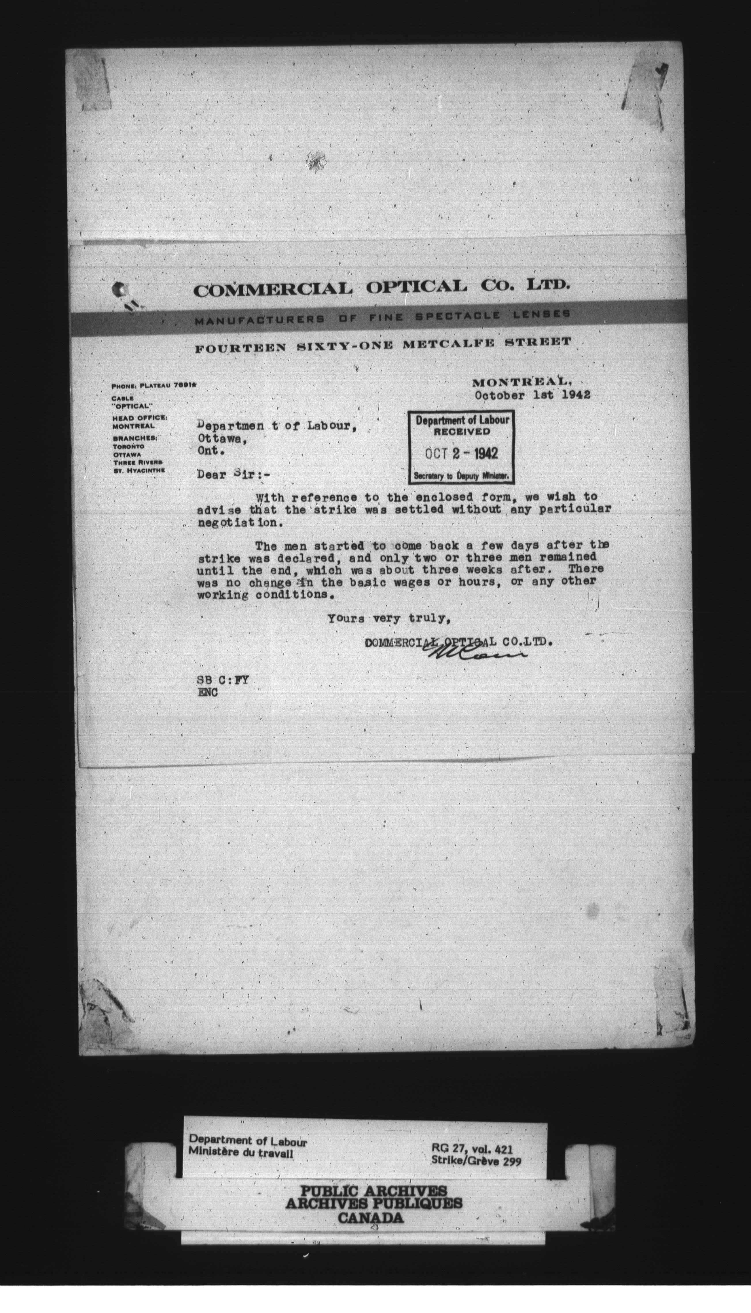 Department of Labour, Economics and Research Branch : Strikes and lockout files - 3026