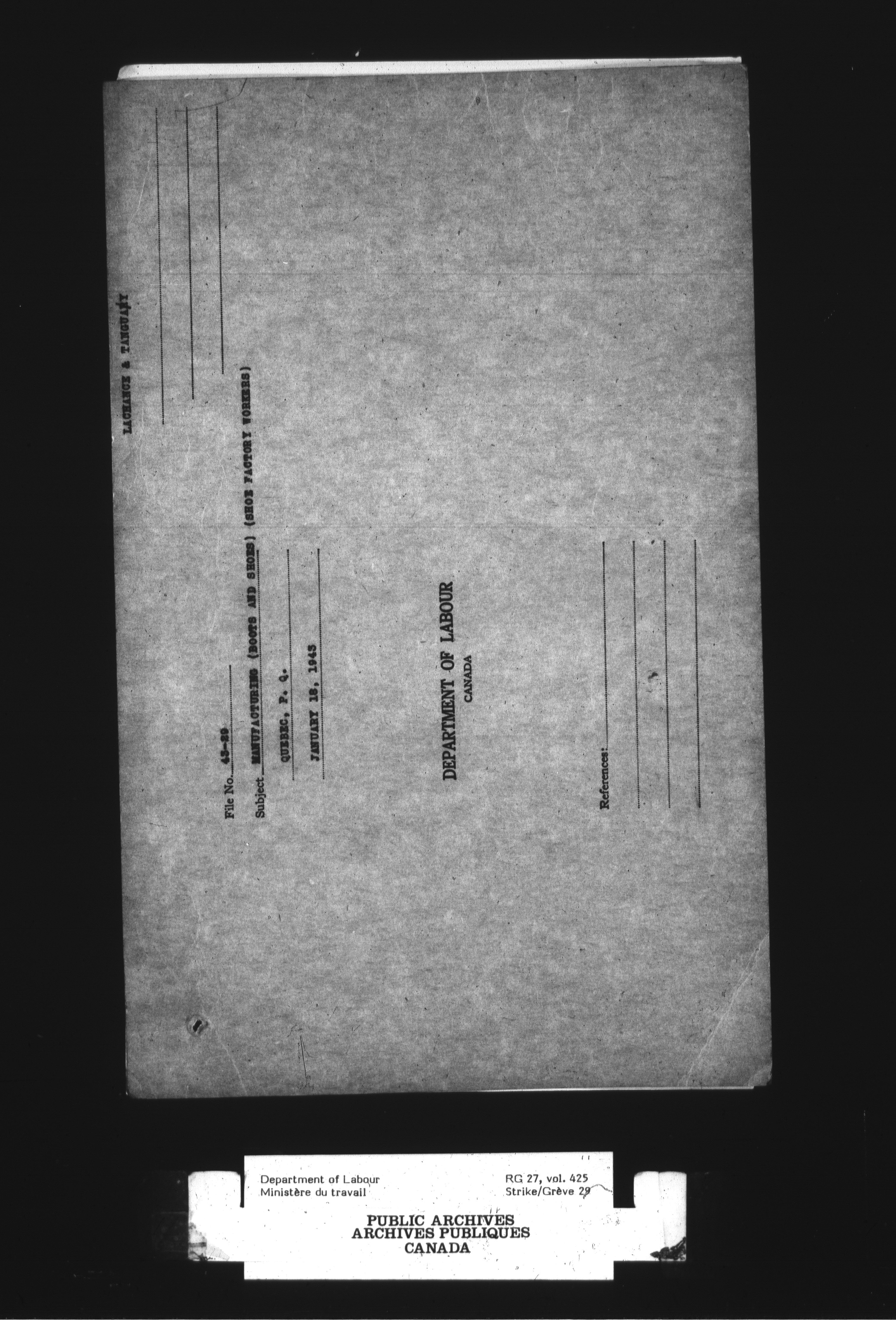 Department of Labour, Economics and Research Branch : Strikes and lockout files : T-3029