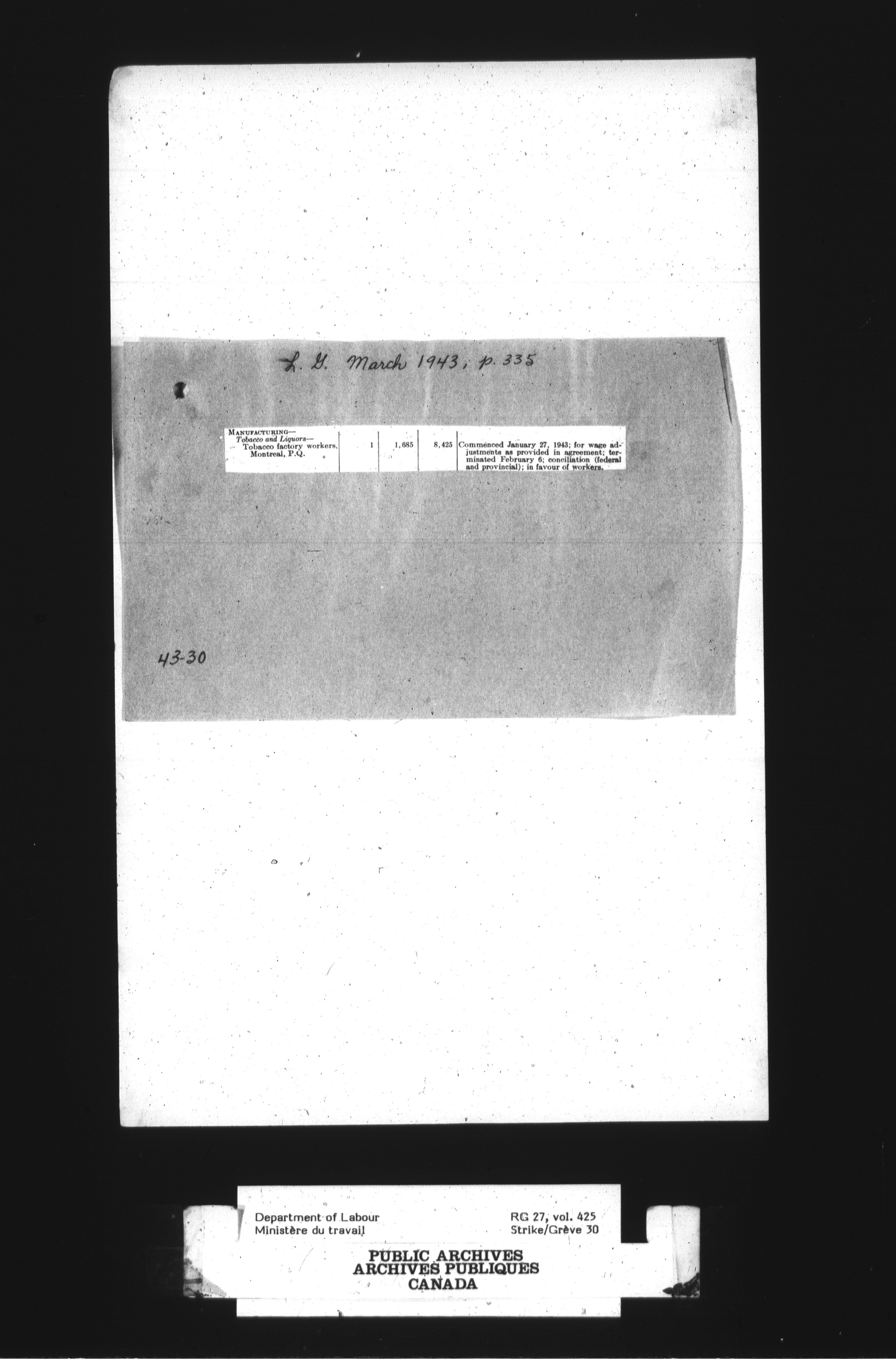 Department of Labour, Economics and Research Branch : Strikes and lockout files : T-3029