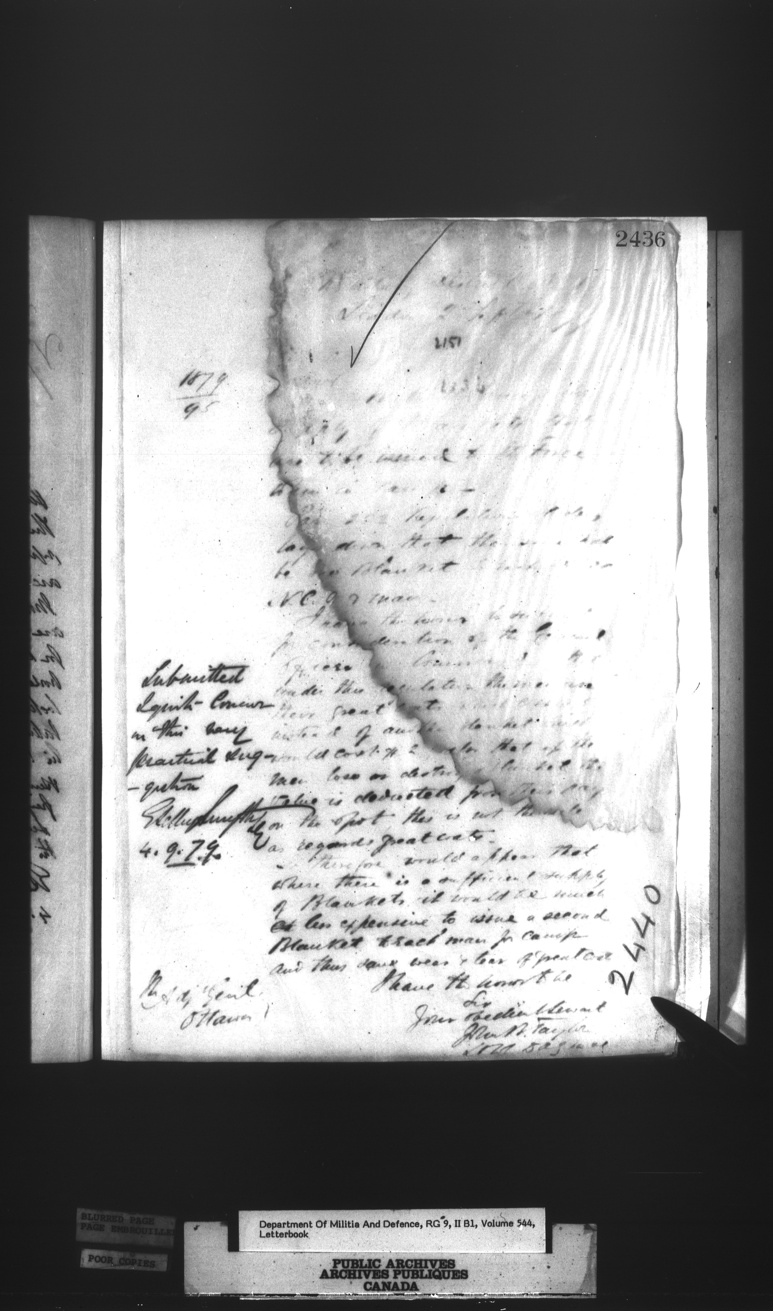 Correspondence of the General Officer Commanding (GOC) of the Canadian Militia and his predecessor, the Adjutant General - 303