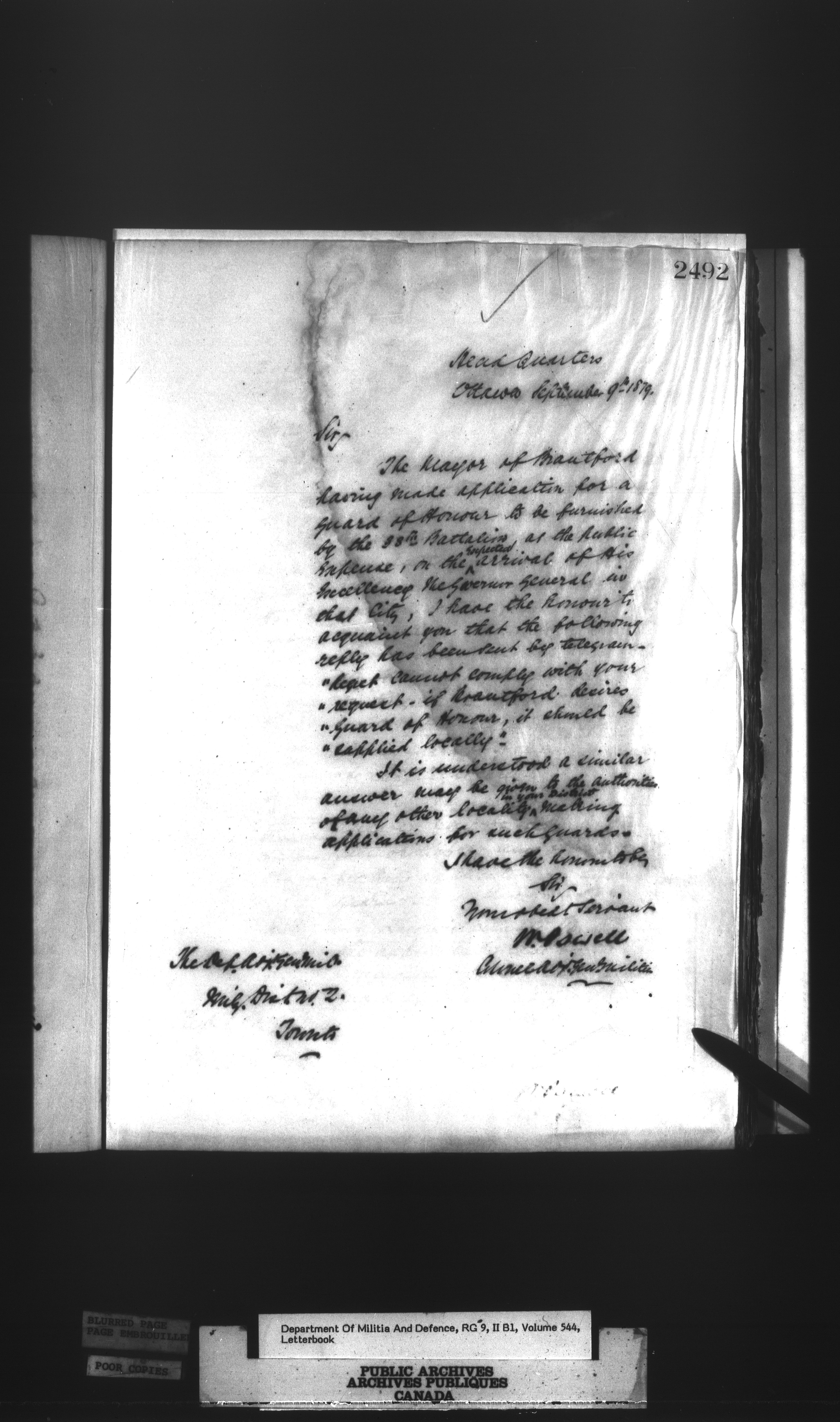 Correspondence of the General Officer Commanding (GOC) of the Canadian Militia and his predecessor, the Adjutant General - 303