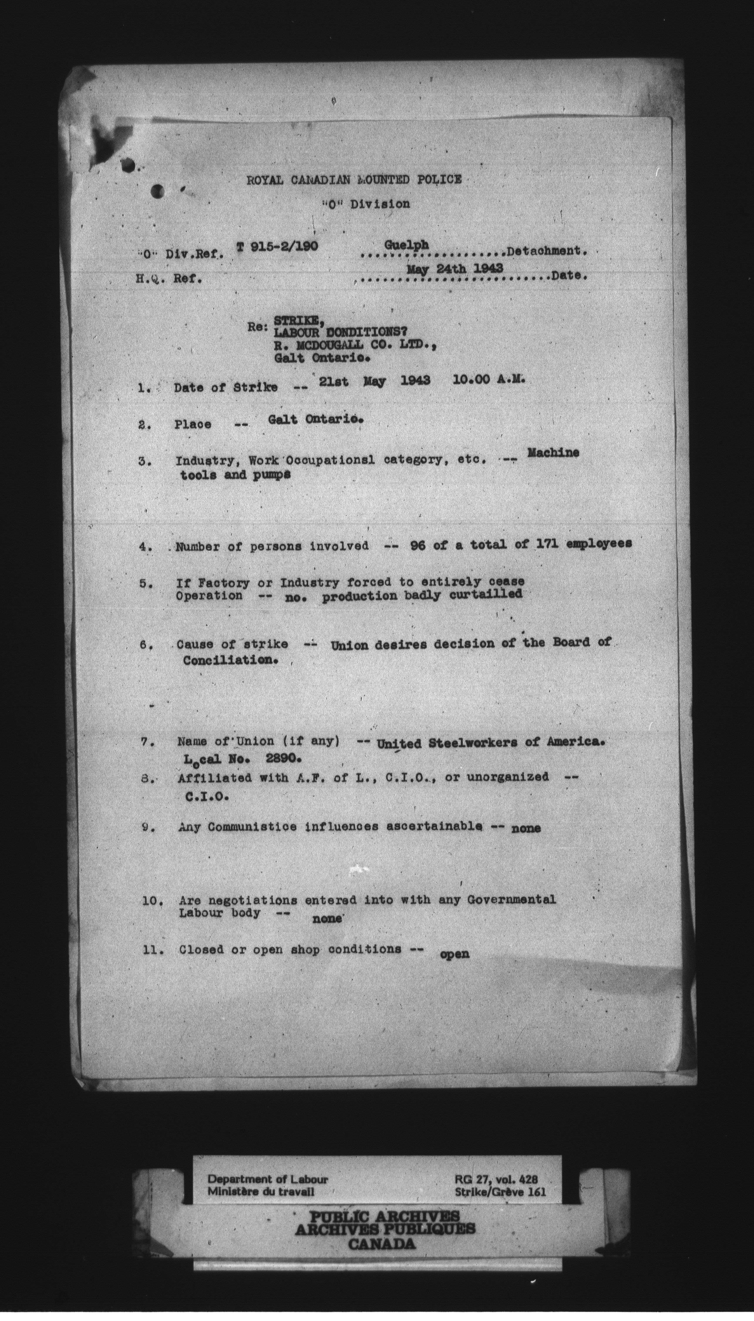 Department of Labour, Economics and Research Branch : Strikes and lockout files - 3031