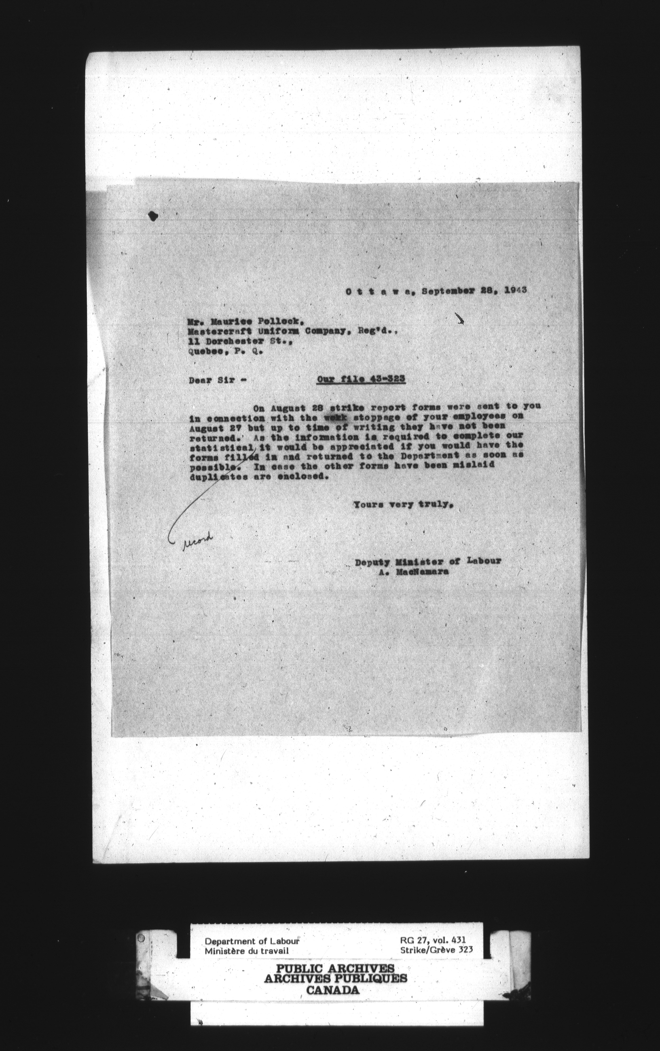 Department of Labour, Economics and Research Branch : Strikes and lockout files - 3035