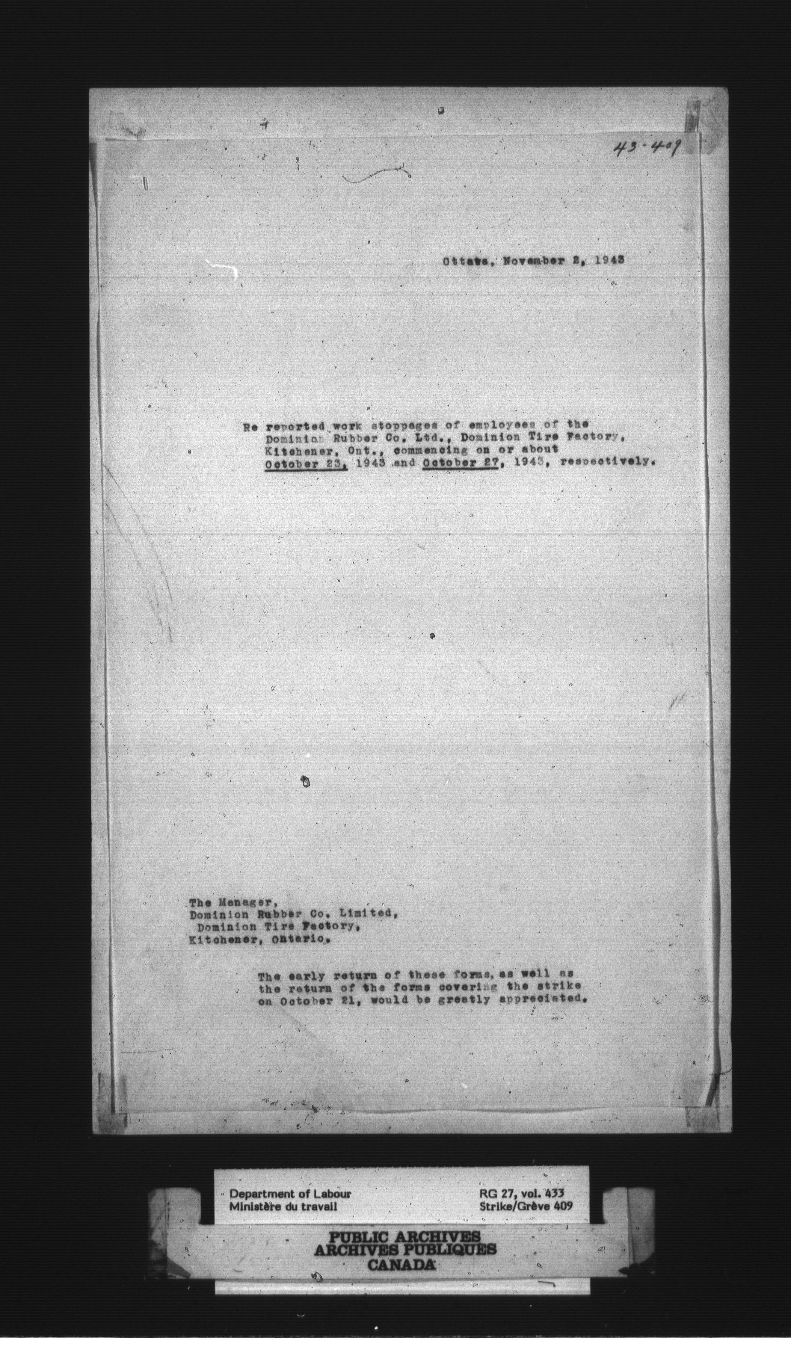Department of Labour, Economics and Research Branch : Strikes and lockout files - 3036