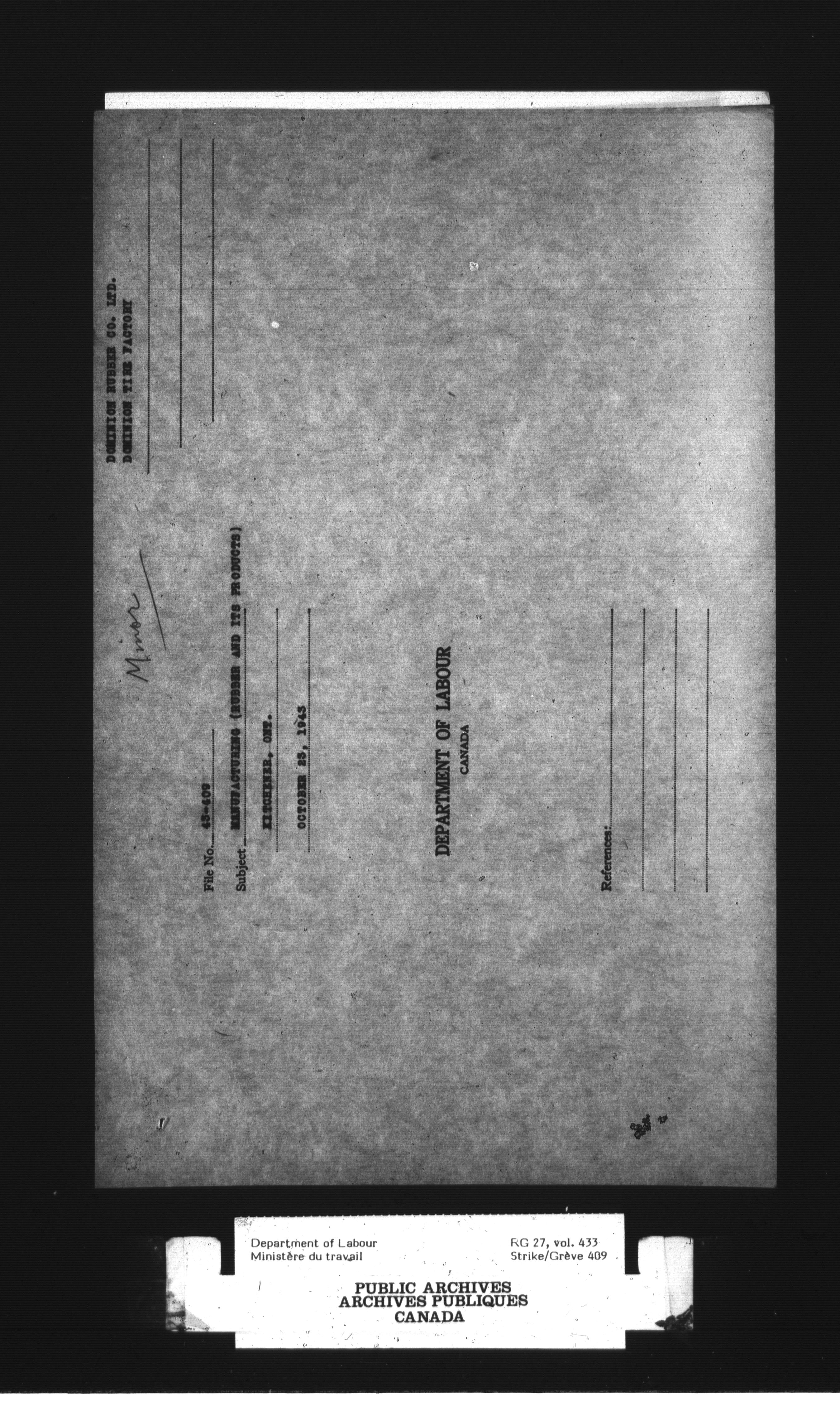 Department of Labour, Economics and Research Branch : Strikes and lockout files - 3036