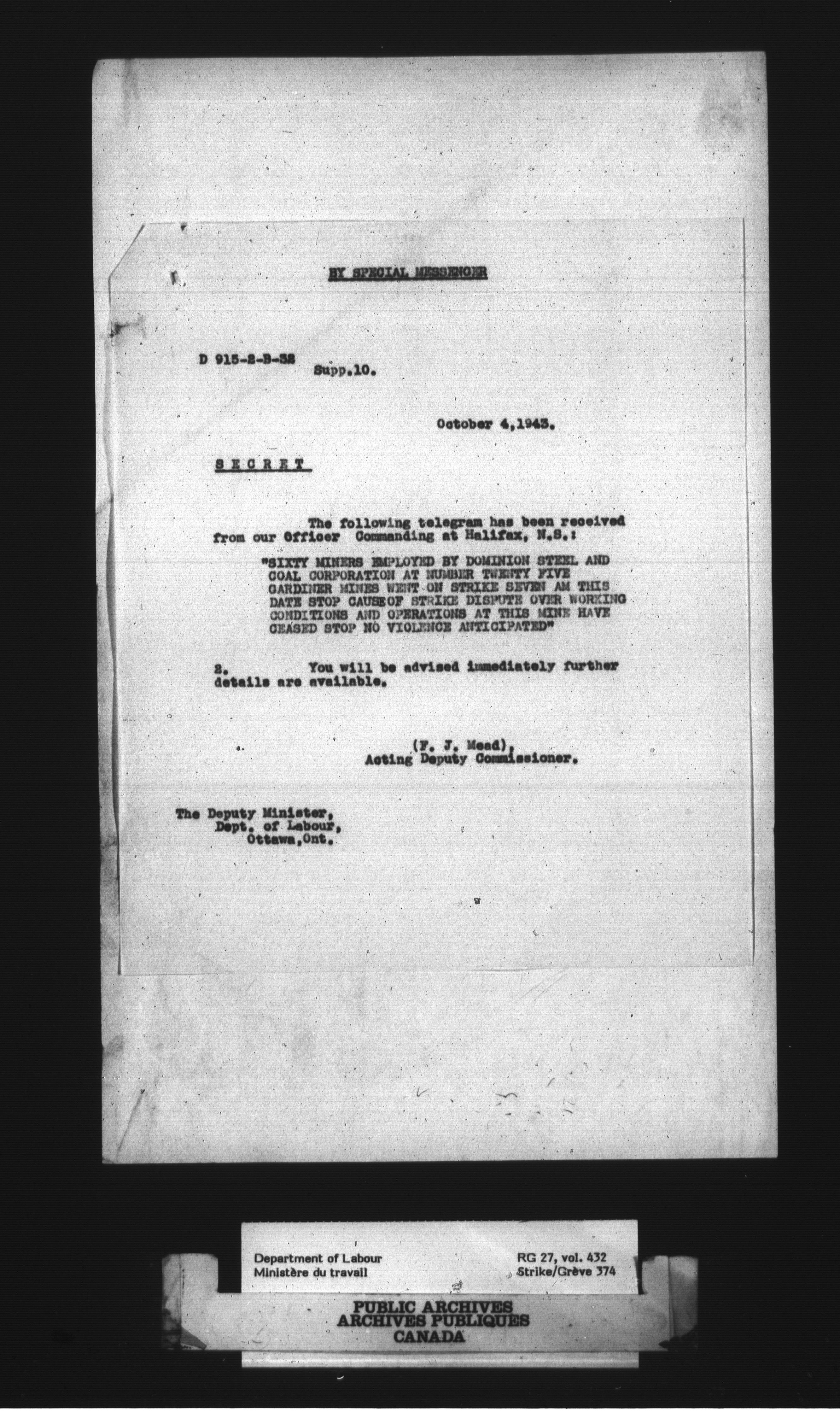 Department of Labour, Economics and Research Branch : Strikes and lockout files - 3036