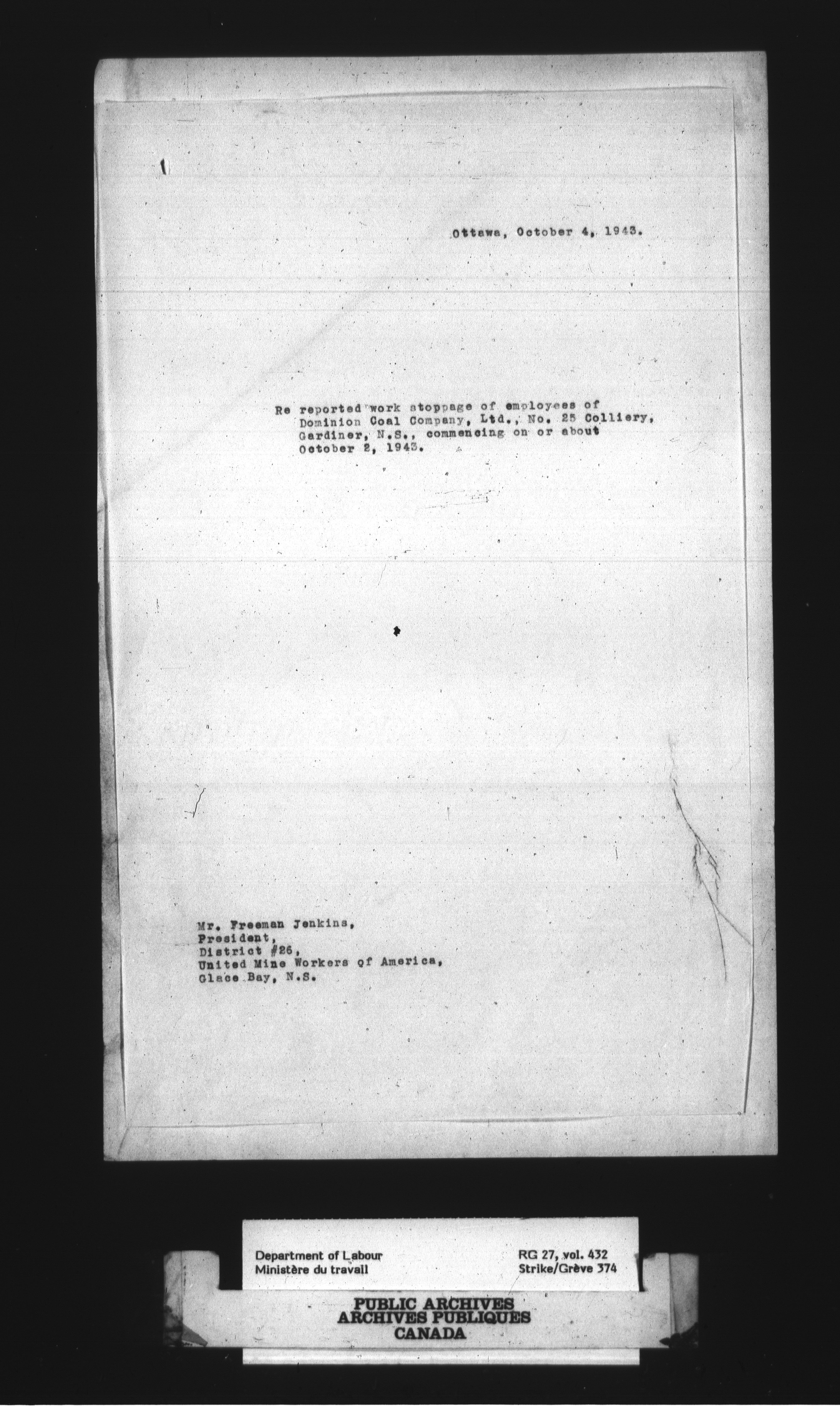 Department of Labour, Economics and Research Branch : Strikes and lockout files - 3036