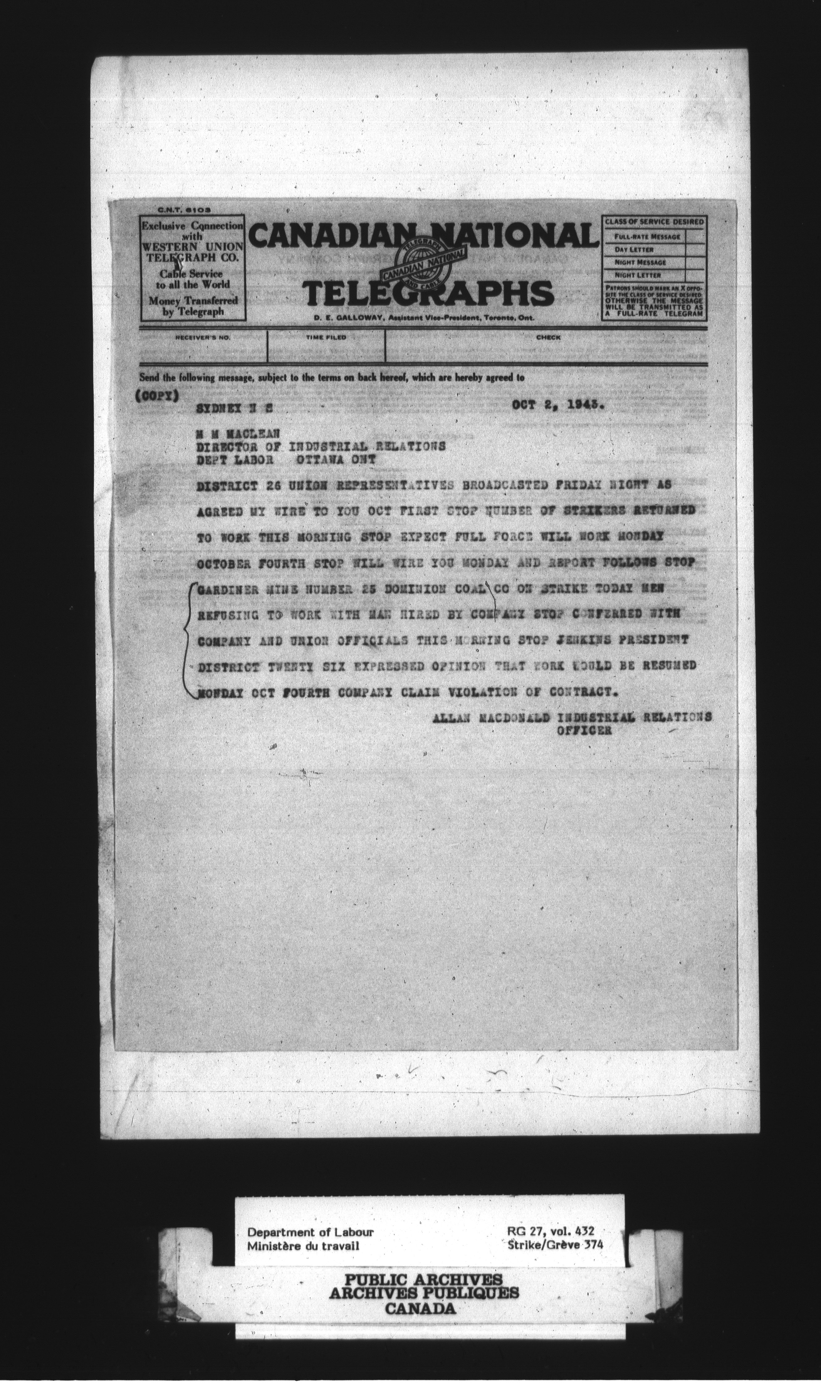 Department of Labour, Economics and Research Branch : Strikes and lockout files : T-3036