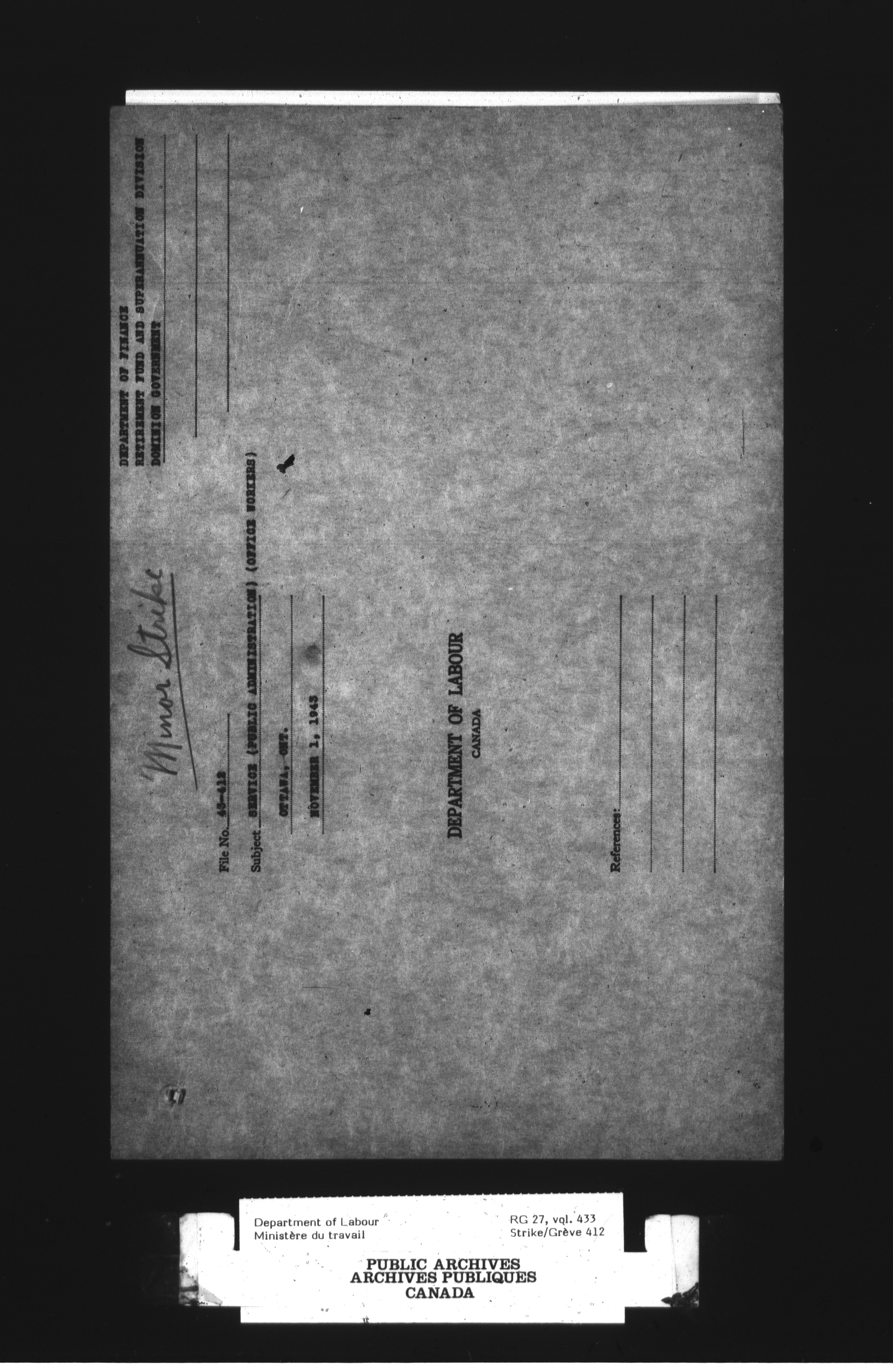 Department of Labour, Economics and Research Branch : Strikes and lockout files - 3037