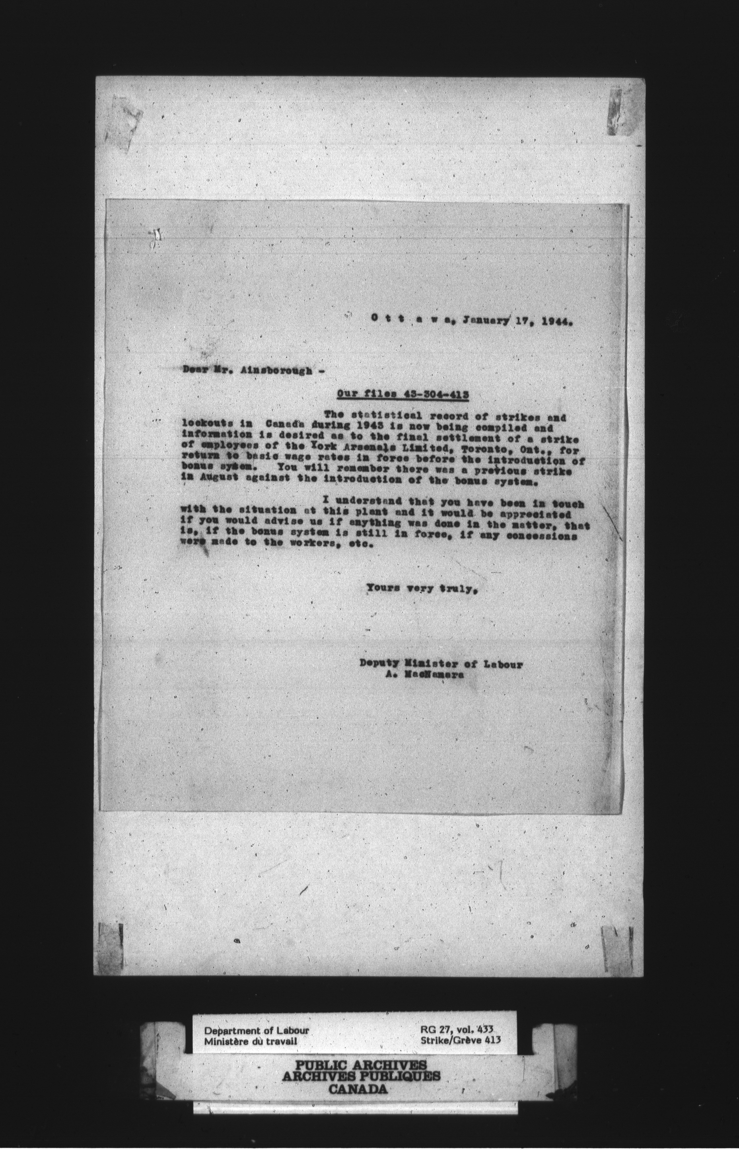 Department of Labour, Economics and Research Branch : Strikes and lockout files - 3037