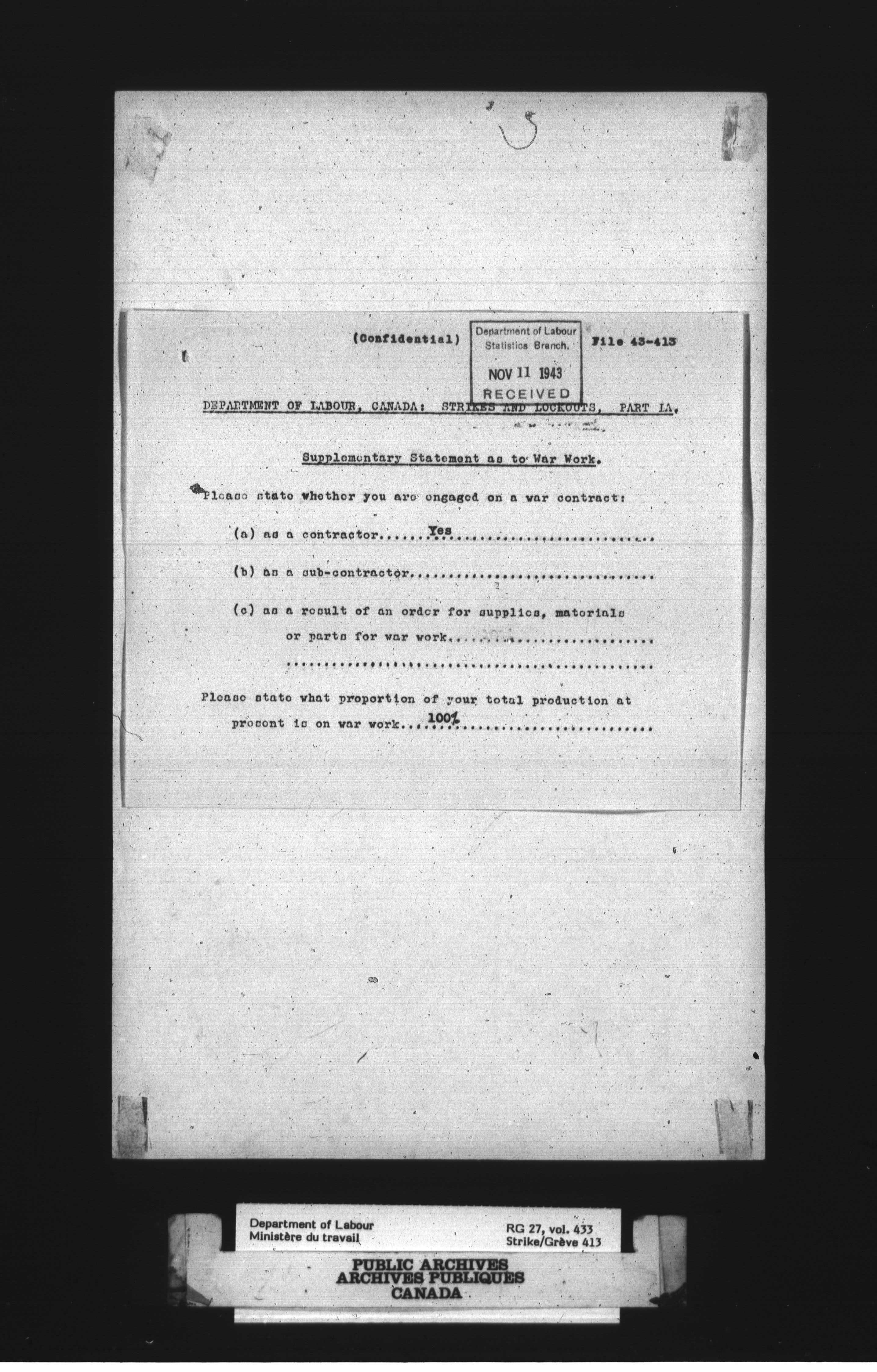 Department of Labour, Economics and Research Branch : Strikes and lockout files - 3037