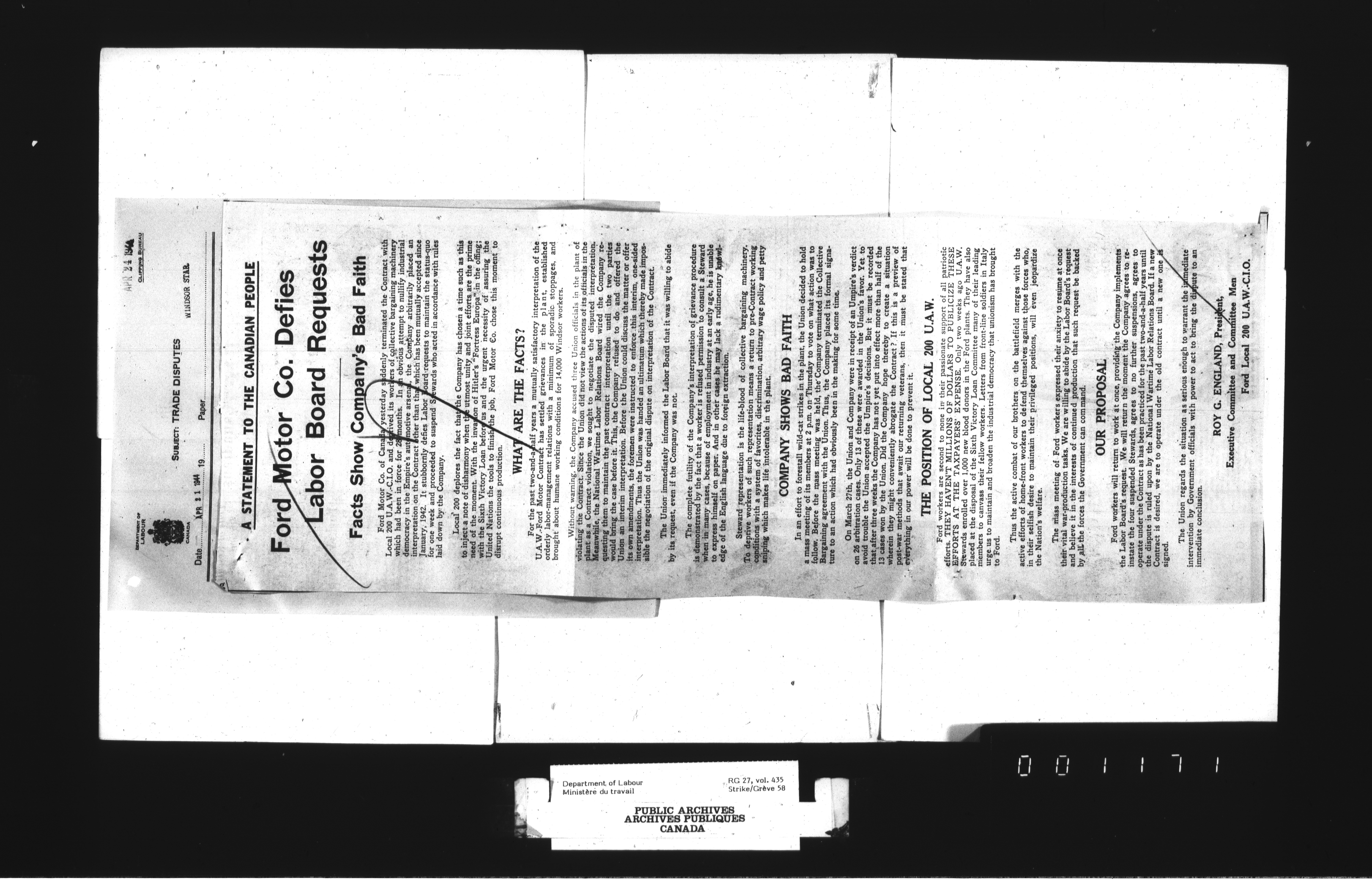 Department of Labour, Economics and Research Branch : Strikes and lockout files - 3038