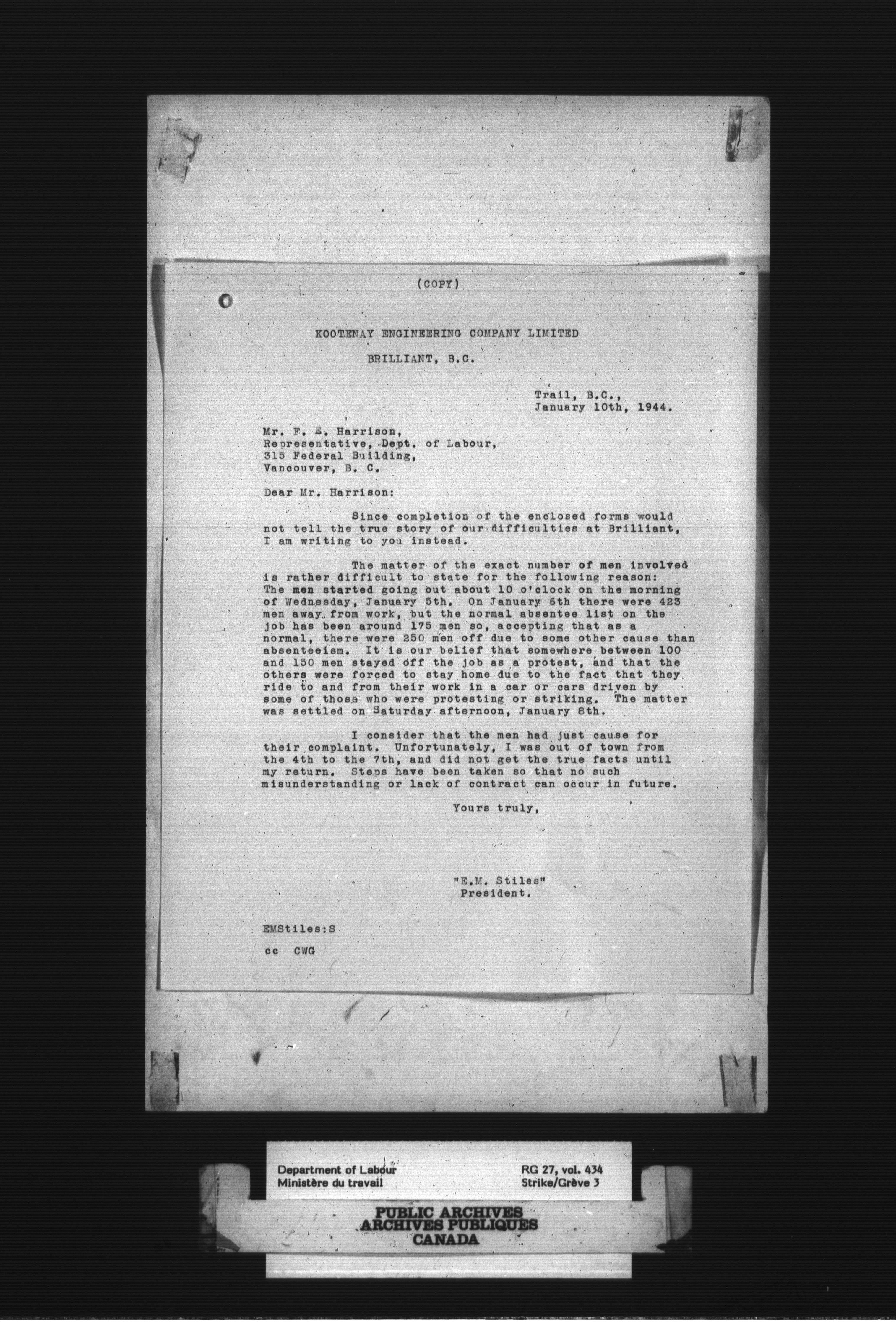 Department of Labour, Economics and Research Branch : Strikes and lockout files - 3038
