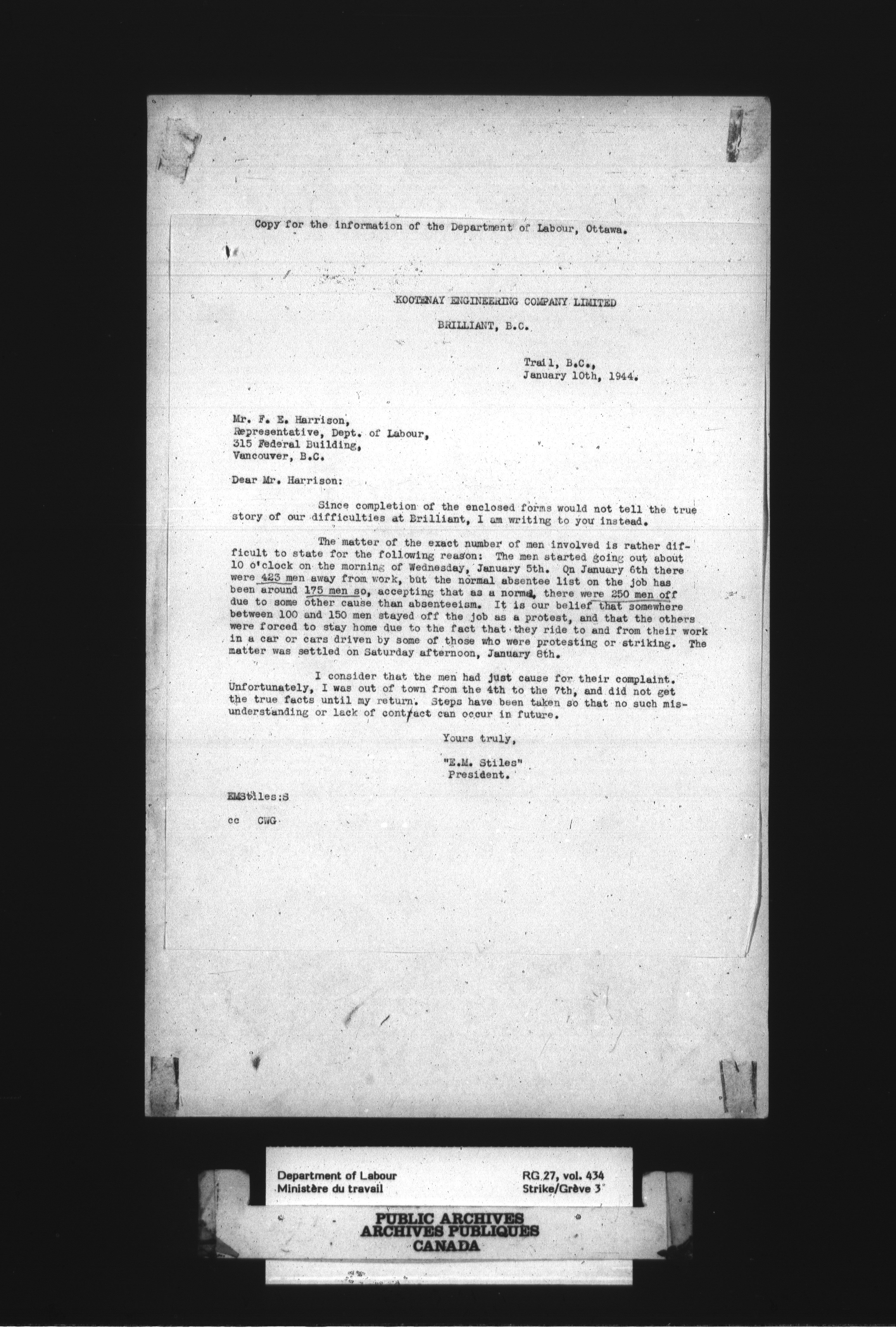 Department of Labour, Economics and Research Branch : Strikes and lockout files - 3038