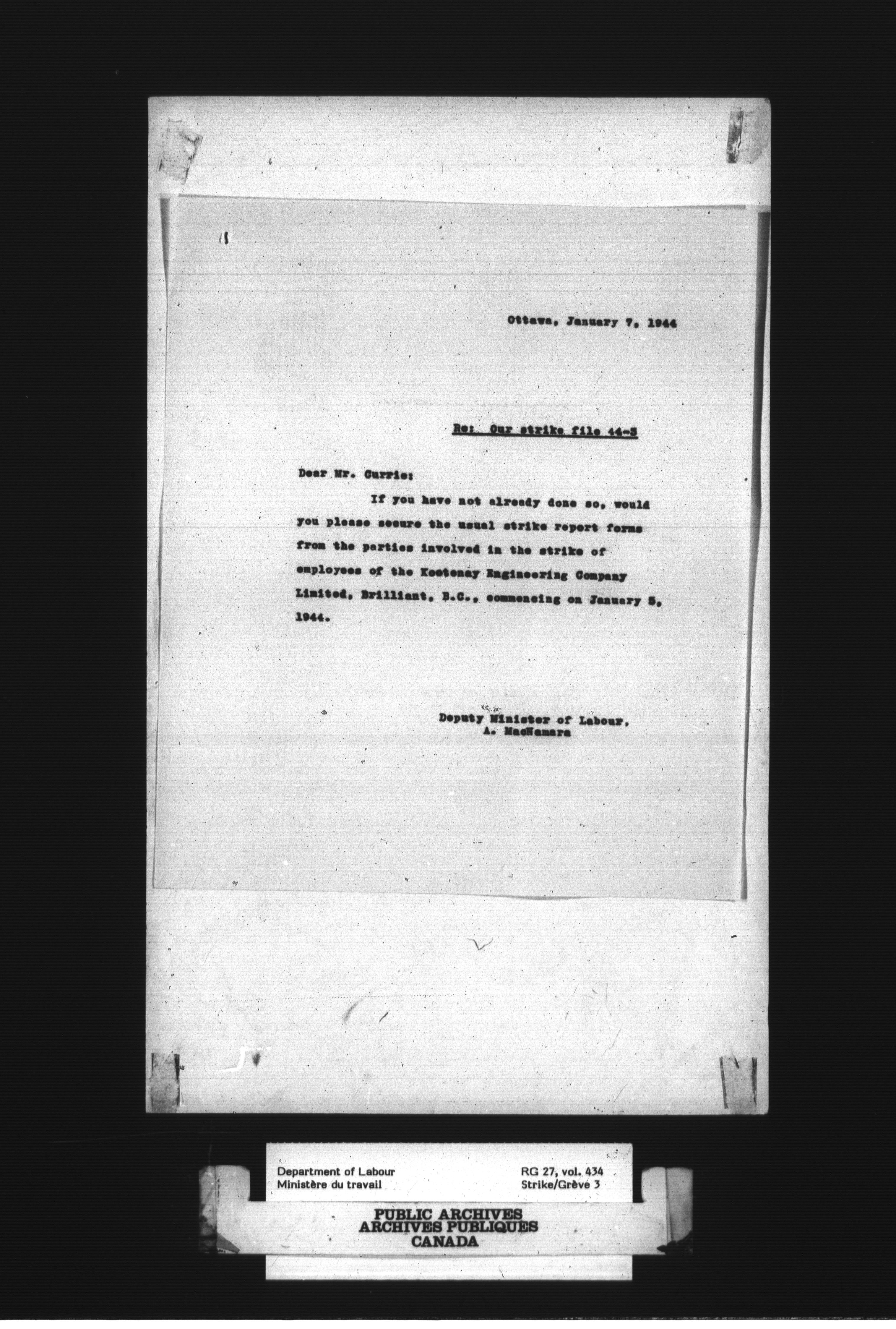 Department of Labour, Economics and Research Branch : Strikes and lockout files - 3038