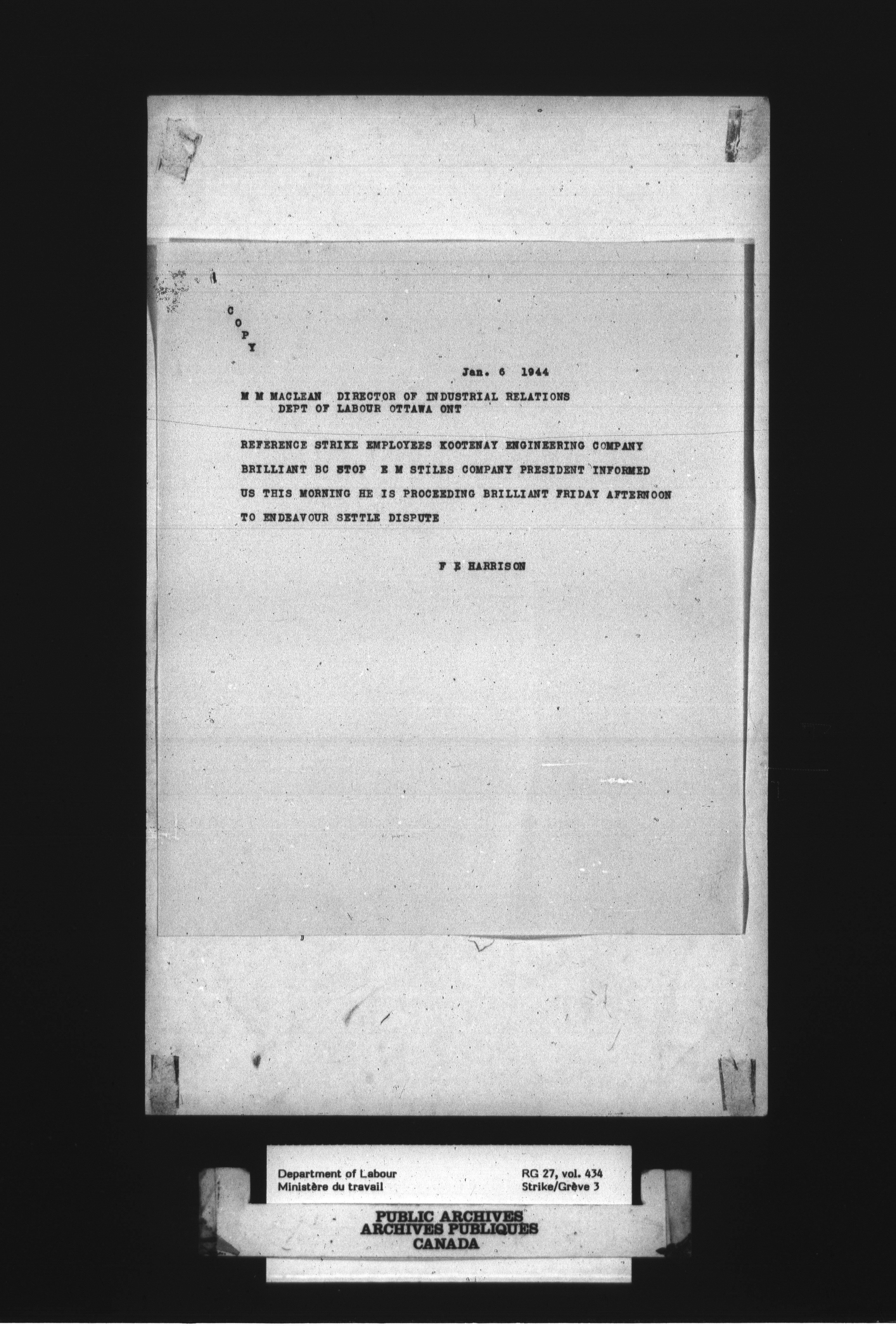 Department of Labour, Economics and Research Branch : Strikes and lockout files - 3038