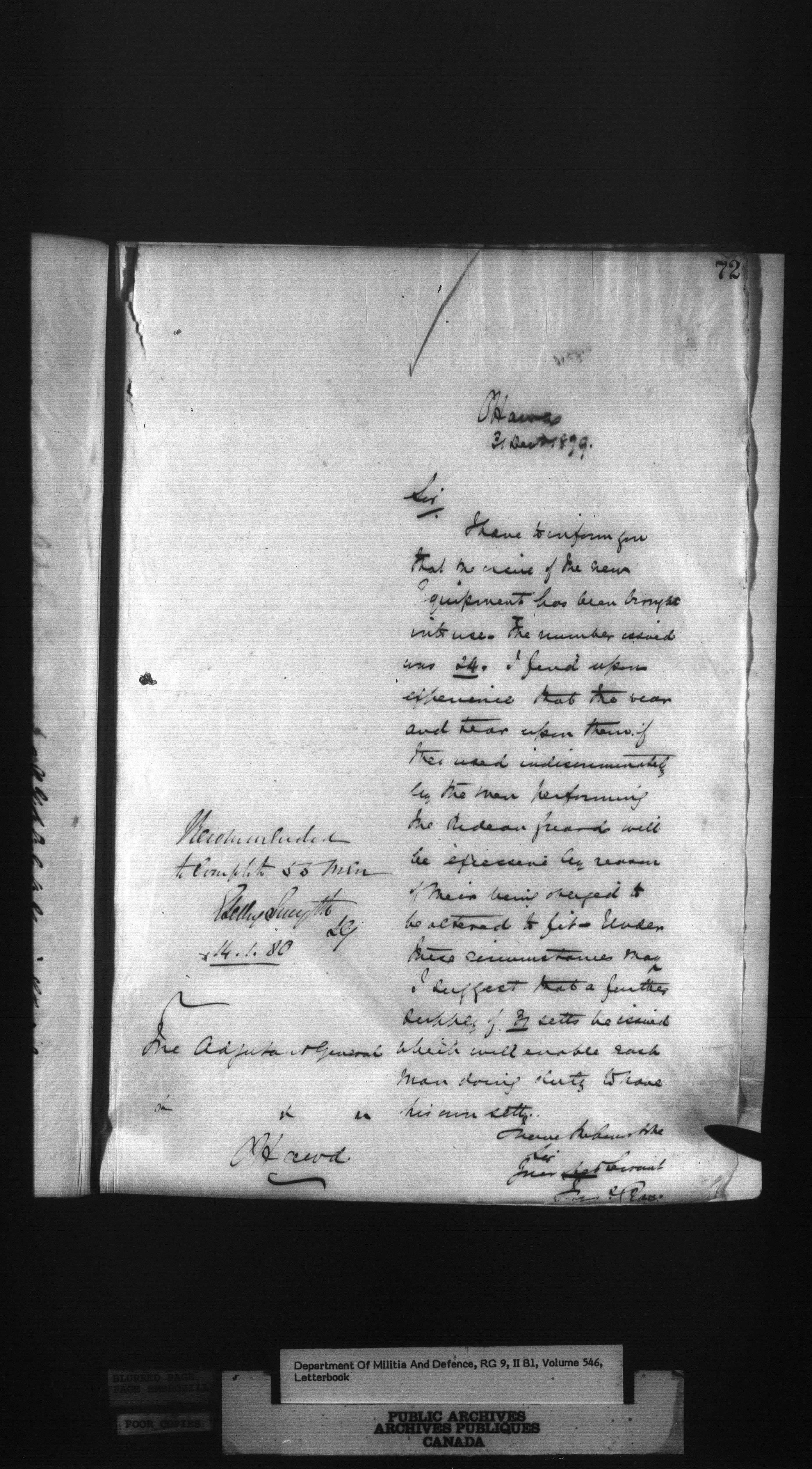 Correspondence of the General Officer Commanding (GOC) of the Canadian Militia and his predecessor, the Adjutant General - 304