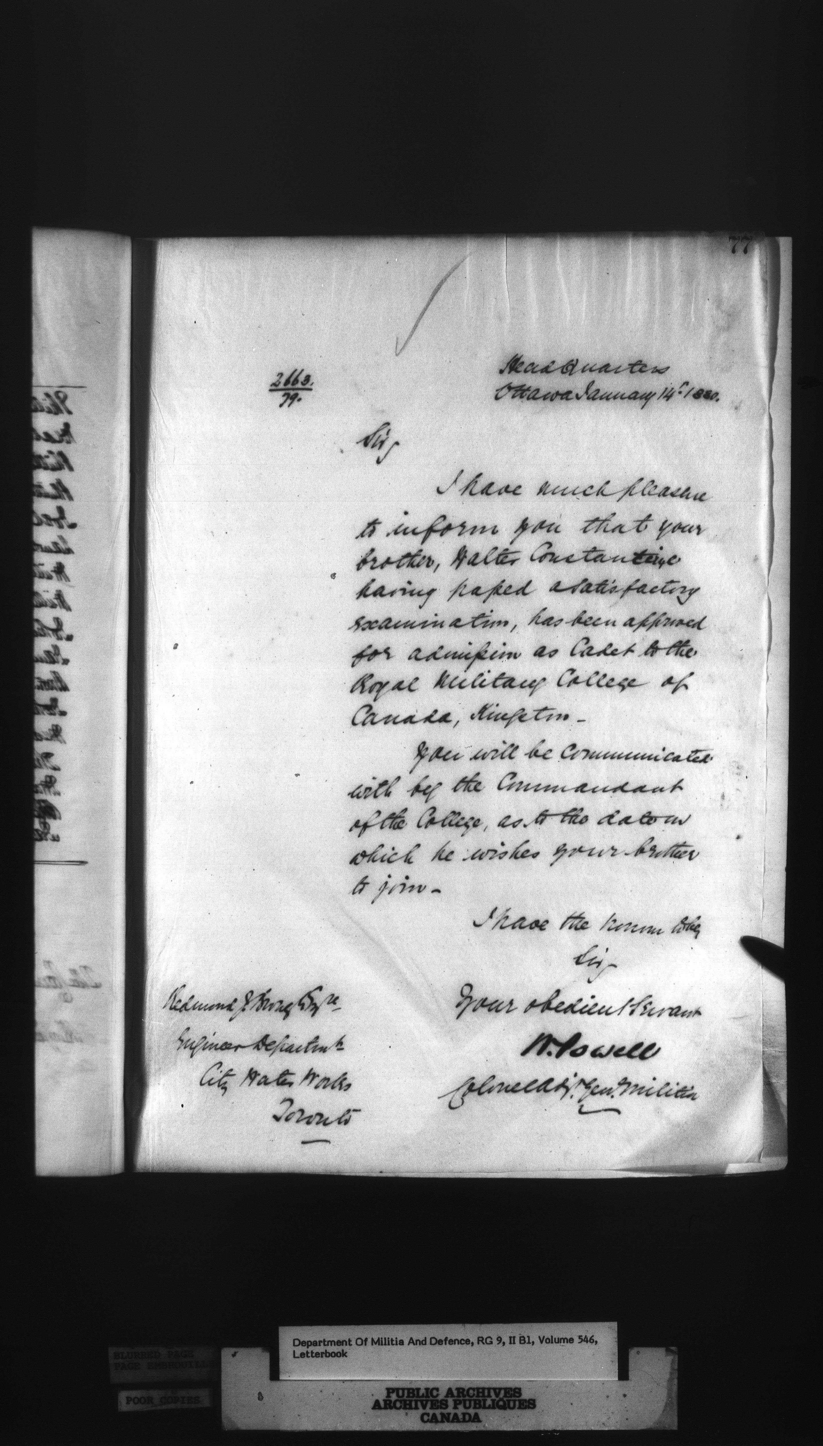 Correspondence of the General Officer Commanding (GOC) of the Canadian Militia and his predecessor, the Adjutant General - 304
