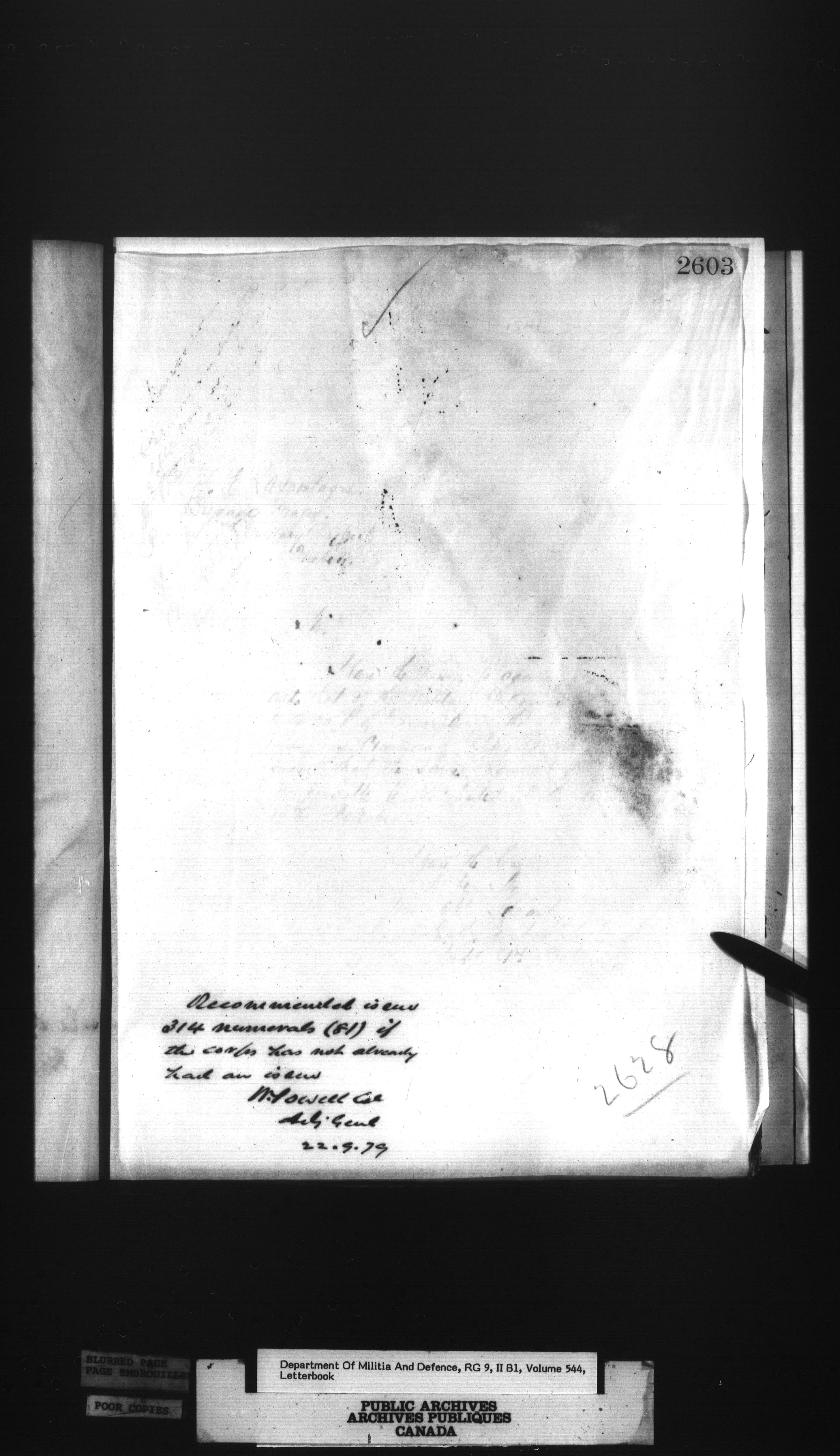 Correspondence of the General Officer Commanding (GOC) of the Canadian Militia and his predecessor, the Adjutant General - 304