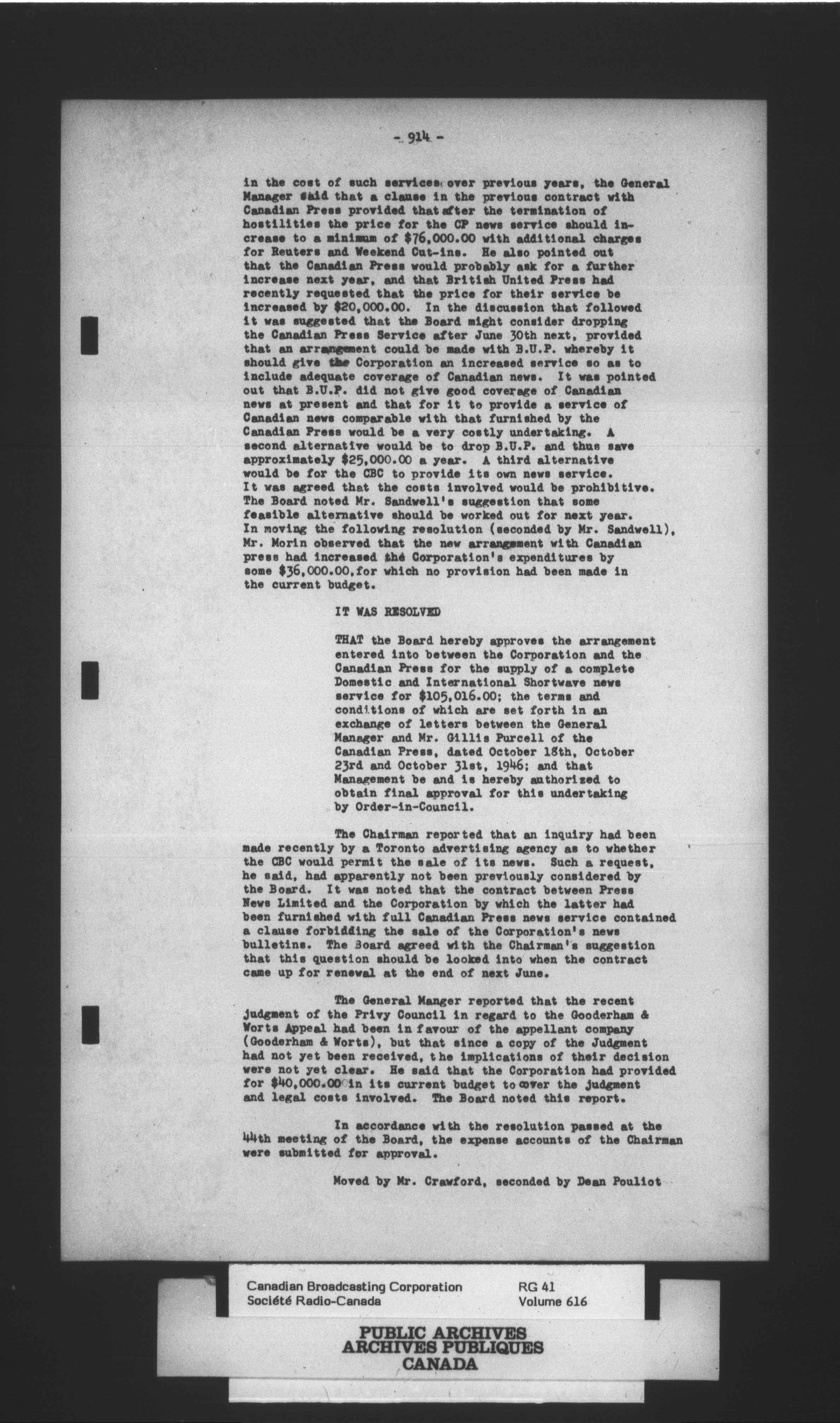 Canadian Broadcasting Corporation : Minutes, agenda books and working papers of the Board of Governors - 3041