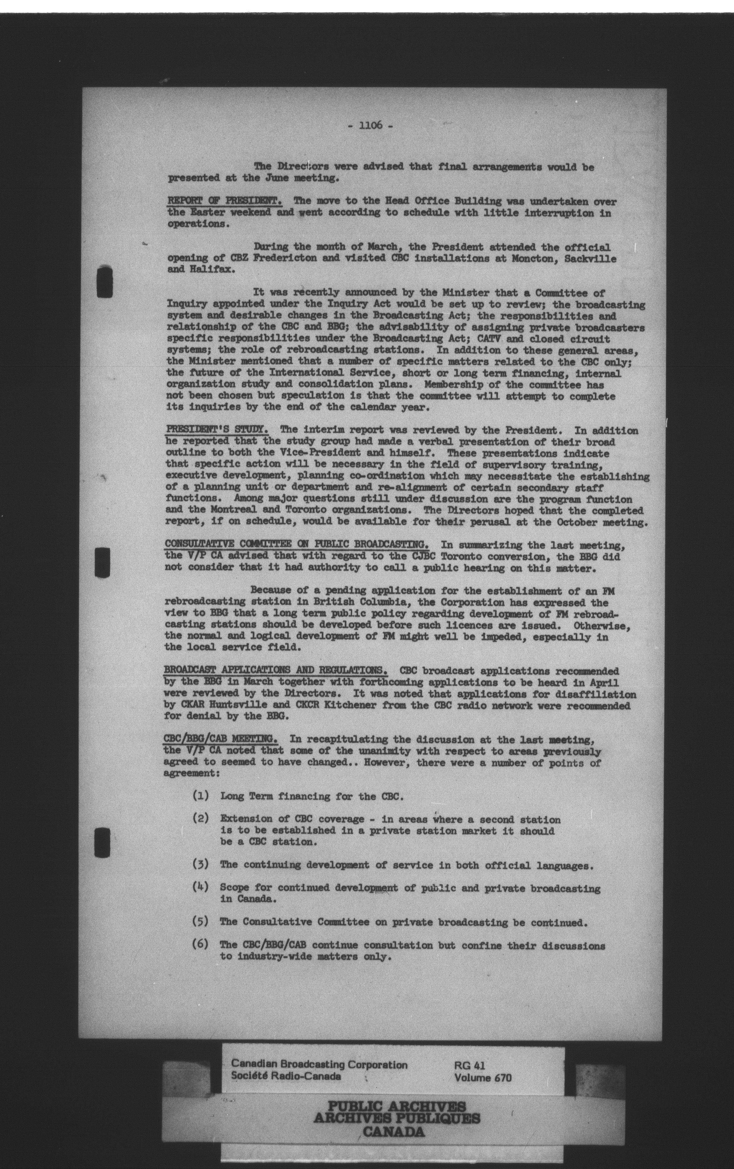 Canadian Broadcasting Corporation : Minutes, agenda books and working papers of the Board of Directors - 3045
