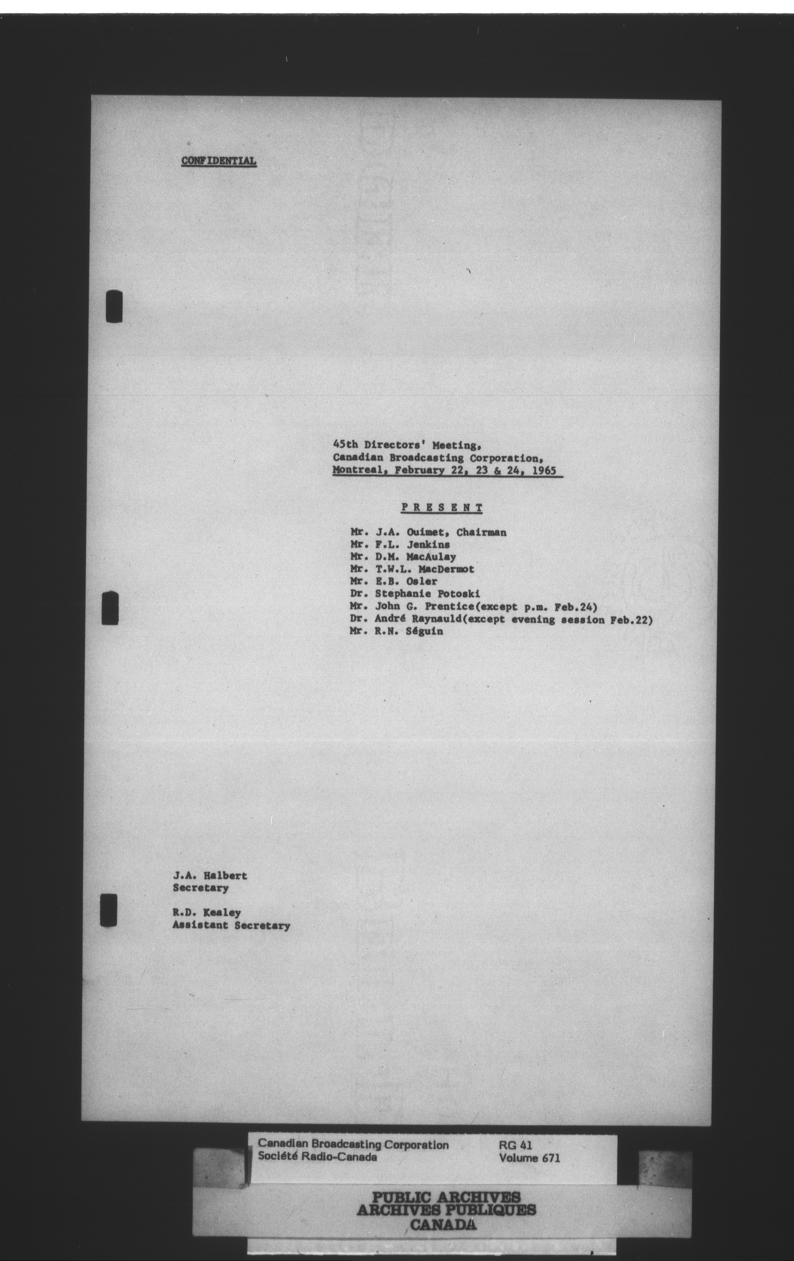 Canadian Broadcasting Corporation : Minutes, agenda books and working papers of the Board of Directors - 3045