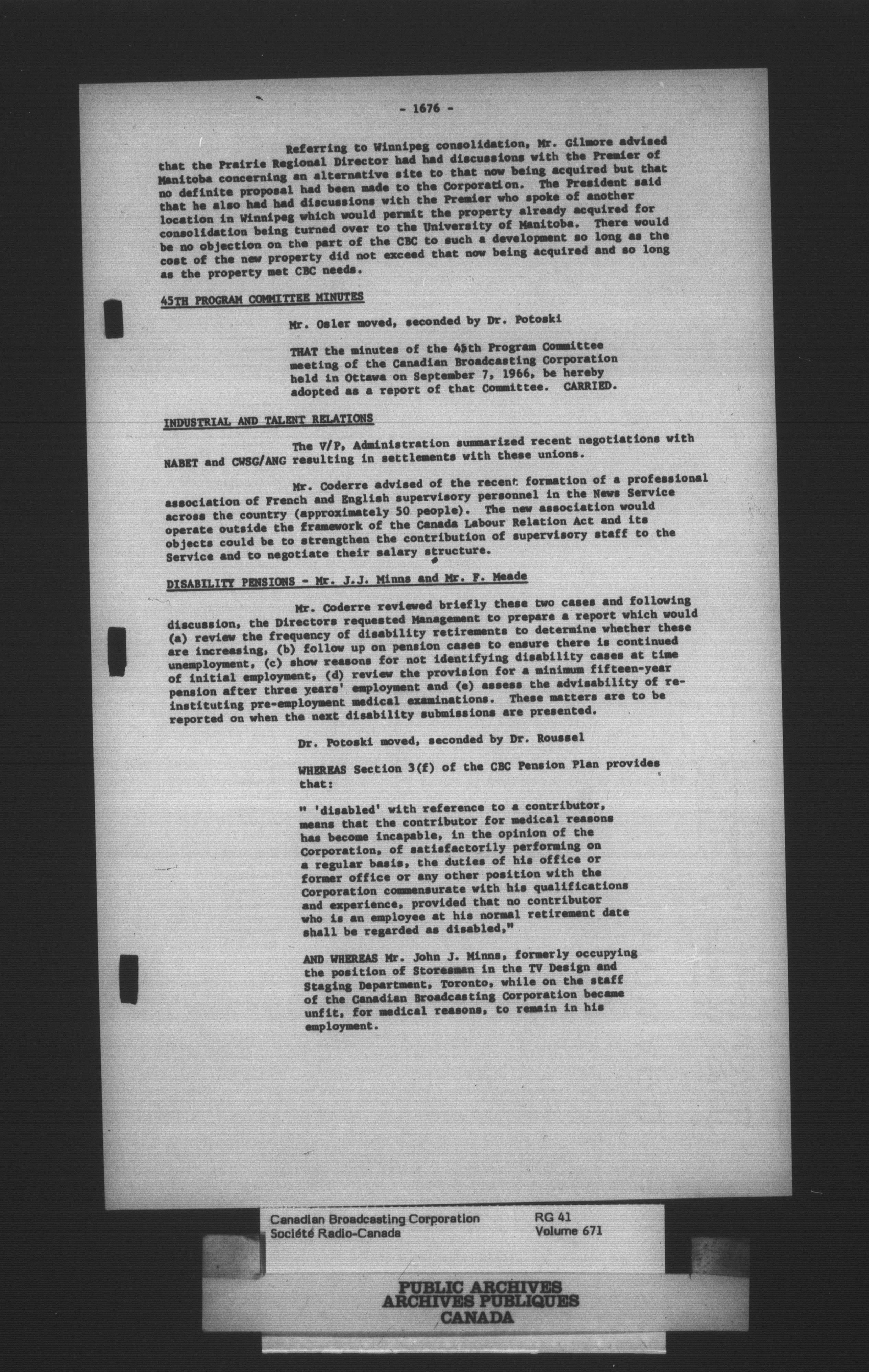Canadian Broadcasting Corporation : Minutes, agenda books and working papers of the Board of Directors - 3046