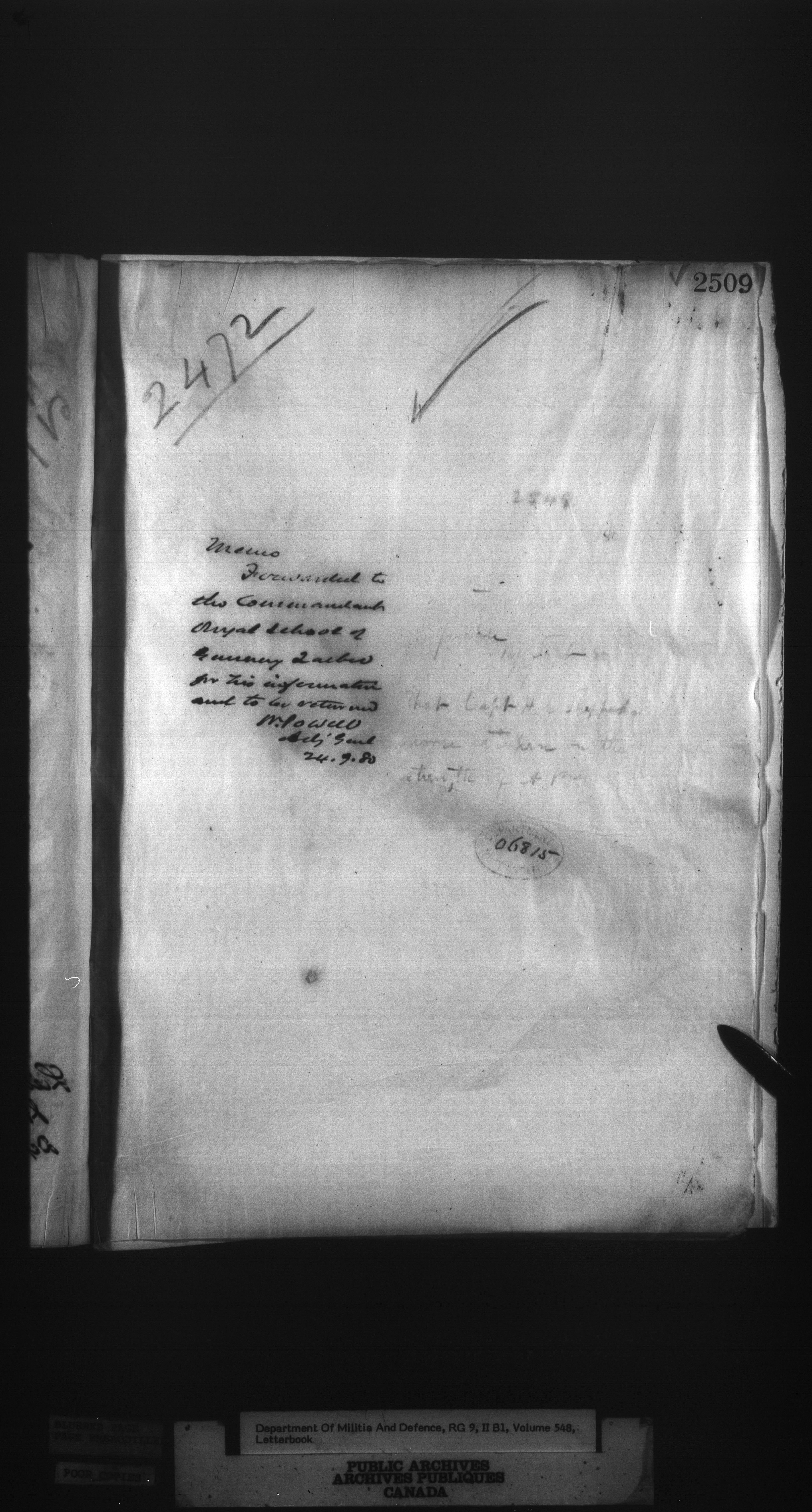 Correspondence of the General Officer Commanding (GOC) of the Canadian Militia and his predecessor, the Adjutant General - 306