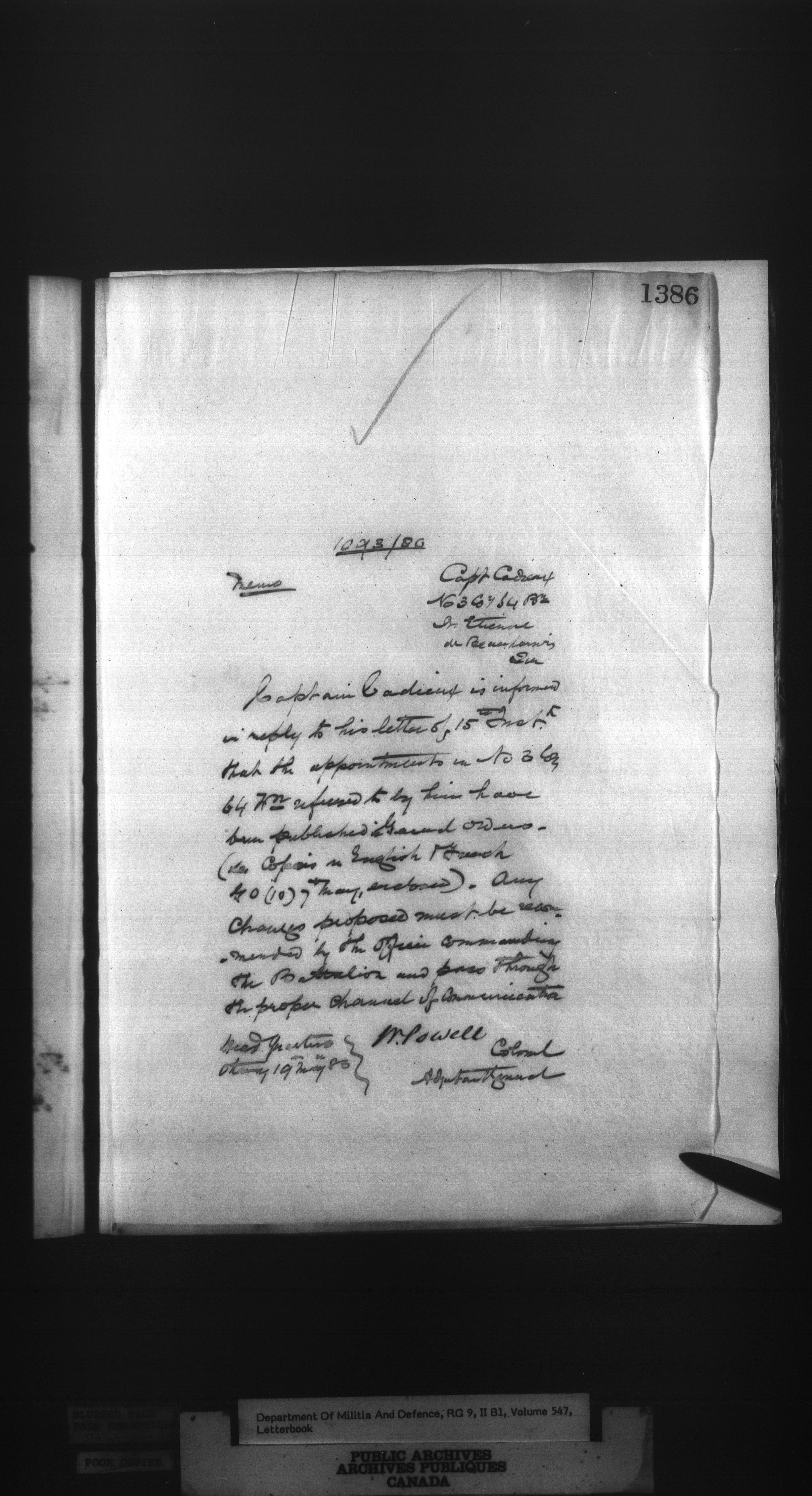 Correspondence of the General Officer Commanding (GOC) of the Canadian Militia and his predecessor, the Adjutant General - 306