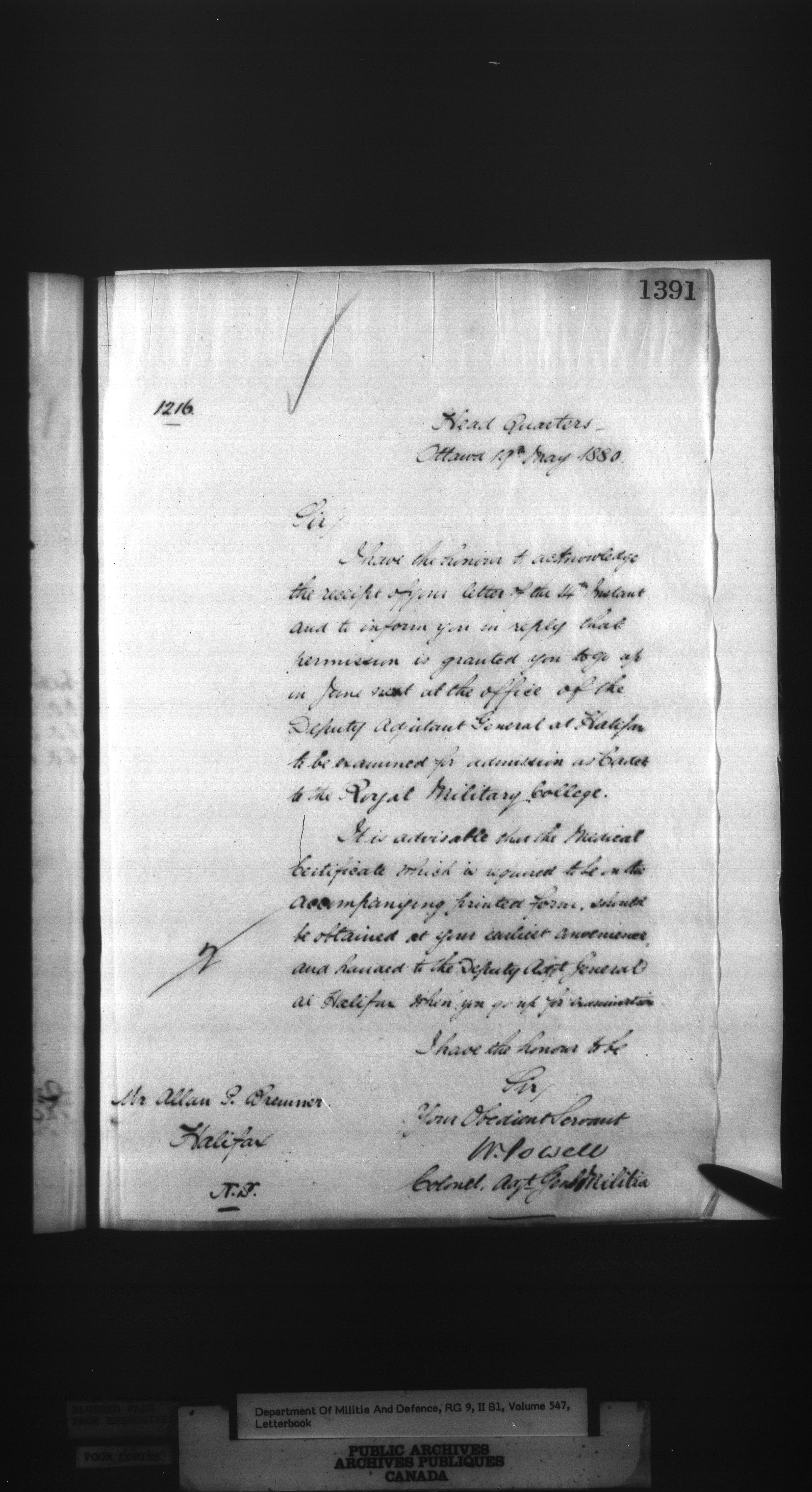 Correspondence of the General Officer Commanding (GOC) of the Canadian Militia and his predecessor, the Adjutant General - 306
