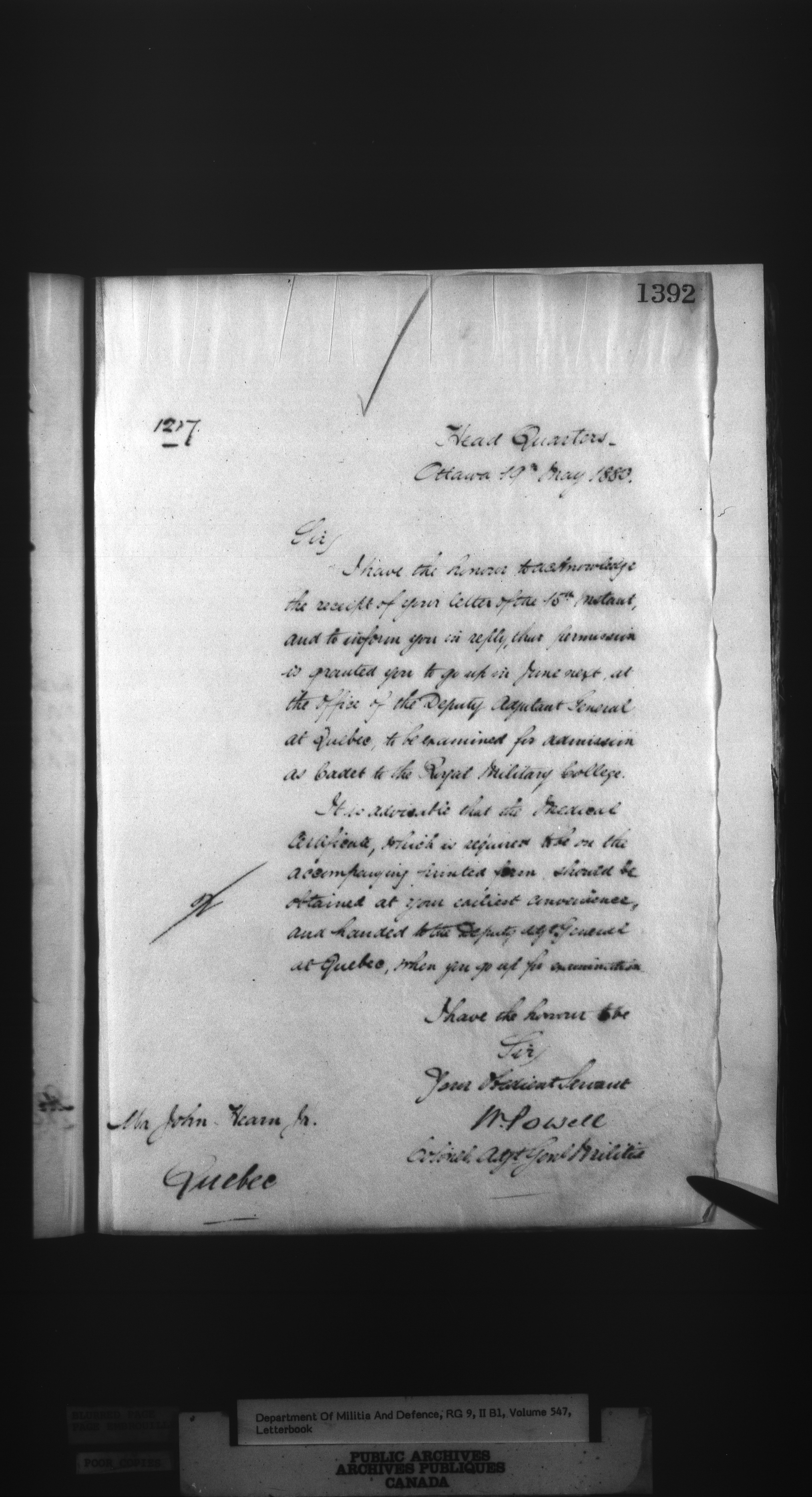 Correspondence of the General Officer Commanding (GOC) of the Canadian Militia and his predecessor, the Adjutant General - 306