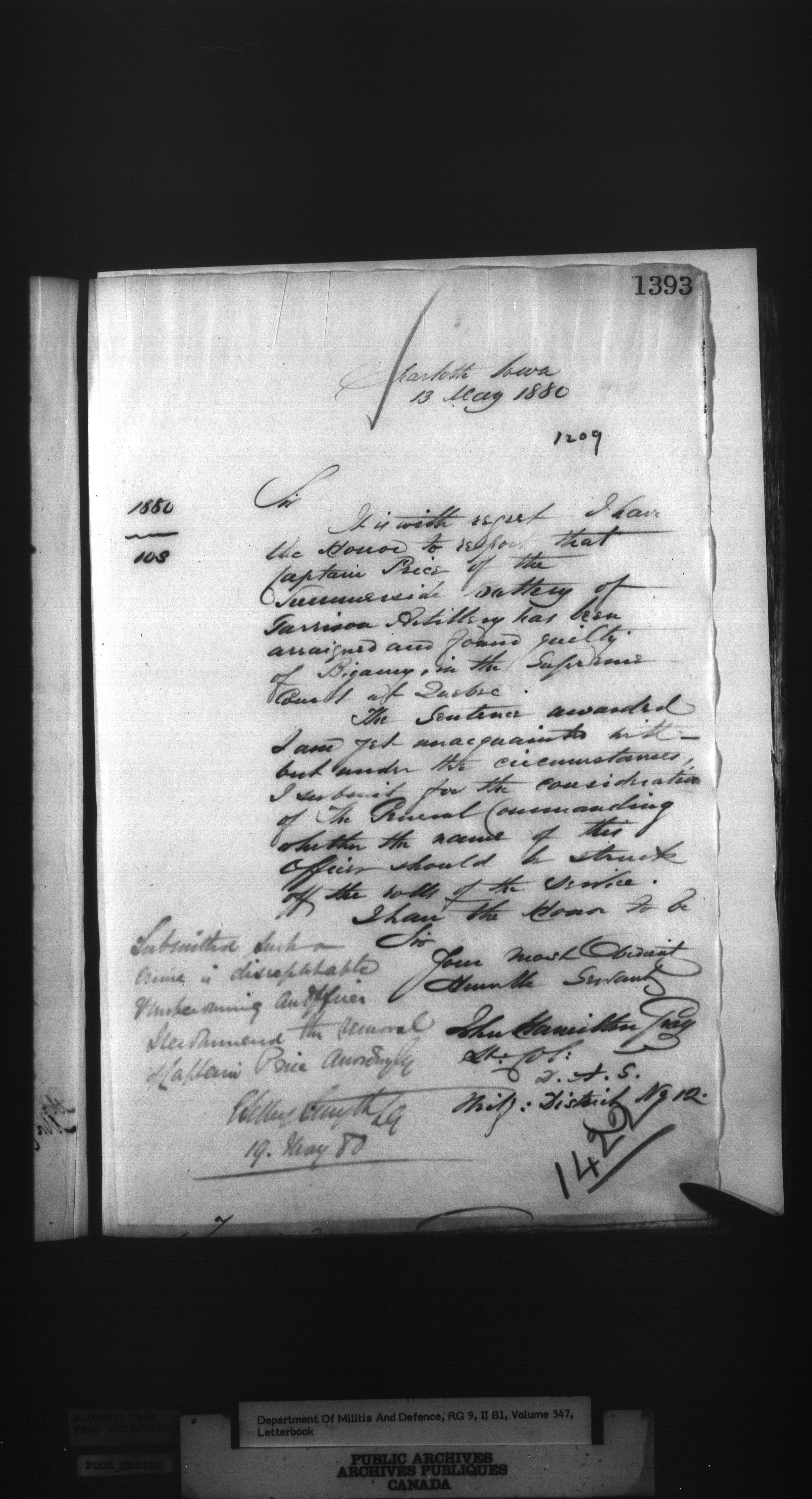 Correspondence of the General Officer Commanding (GOC) of the Canadian Militia and his predecessor, the Adjutant General - 306