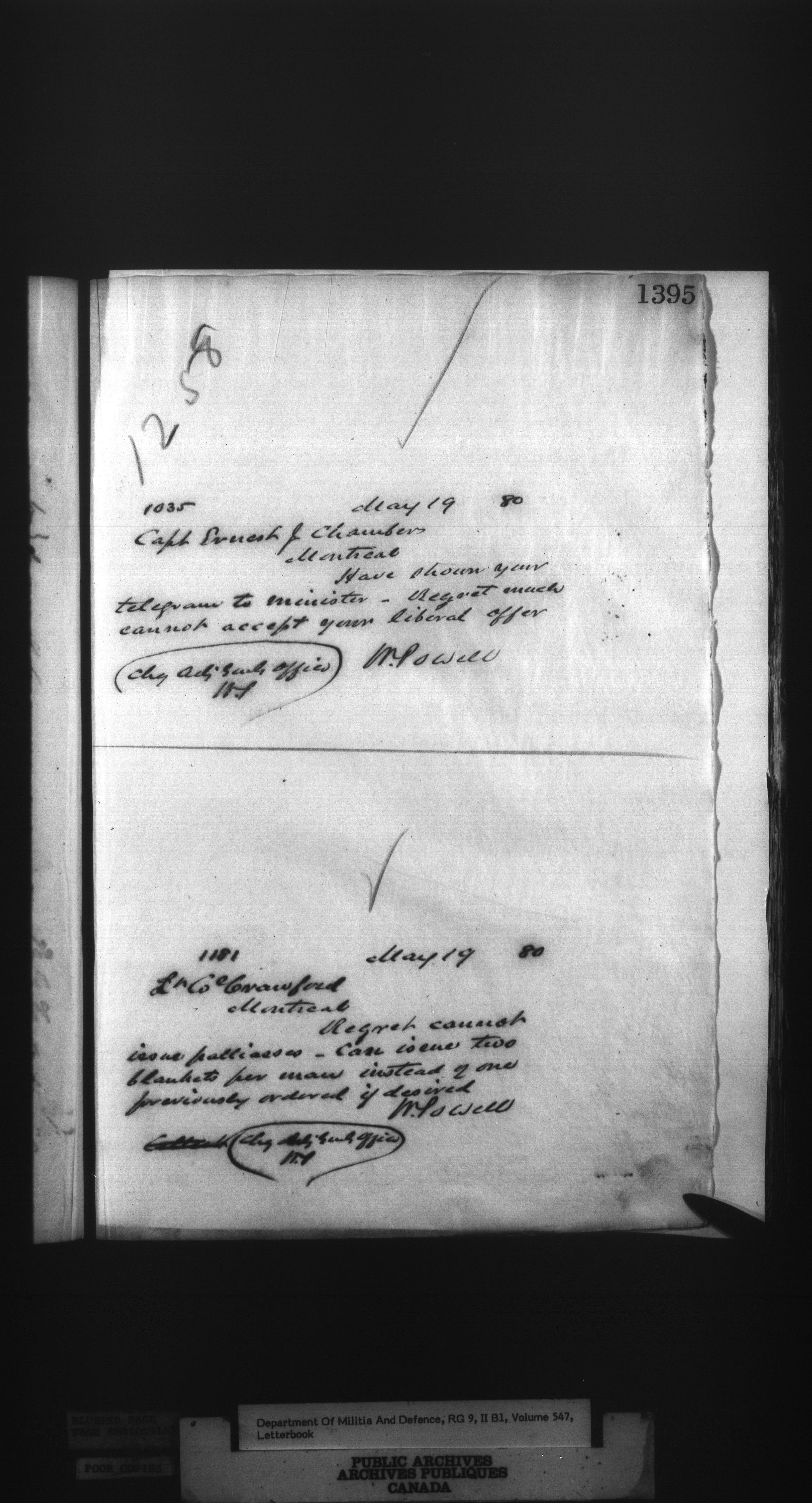Correspondence of the General Officer Commanding (GOC) of the Canadian Militia and his predecessor, the Adjutant General - 306