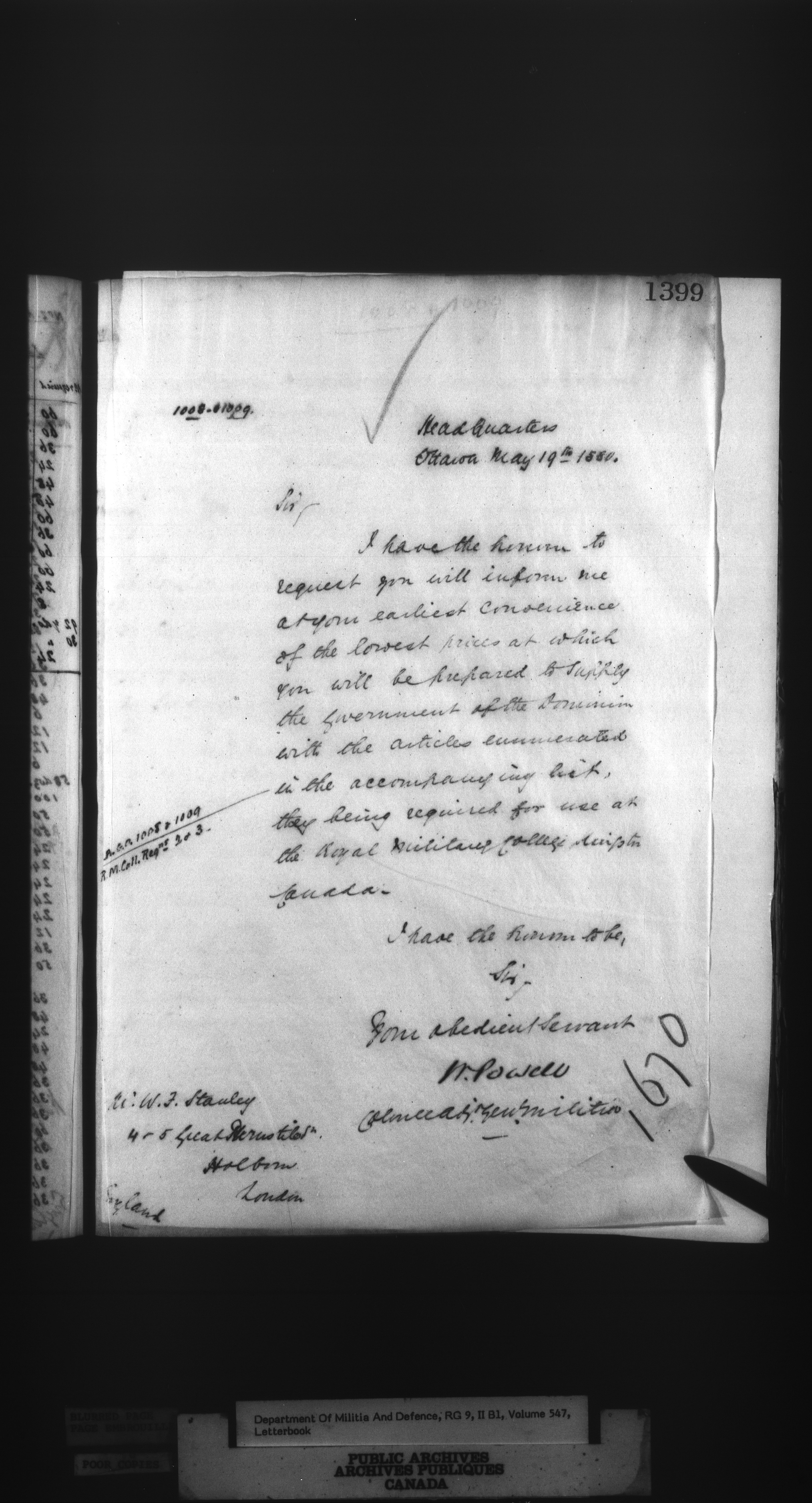 Correspondence of the General Officer Commanding (GOC) of the Canadian Militia and his predecessor, the Adjutant General - 306