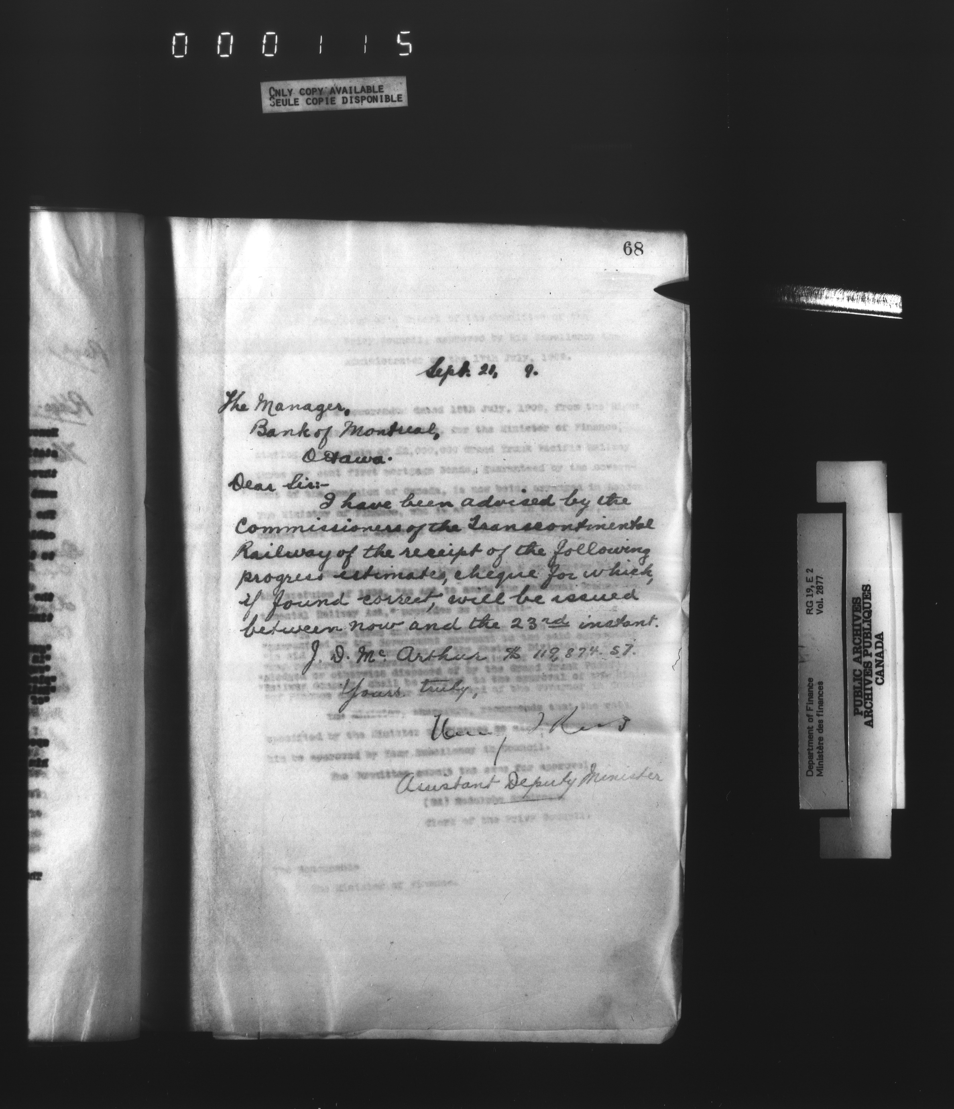 Outgoing correspondence of the office of the Deputy-Inspector General and Deputy Minister of Finance - 3060