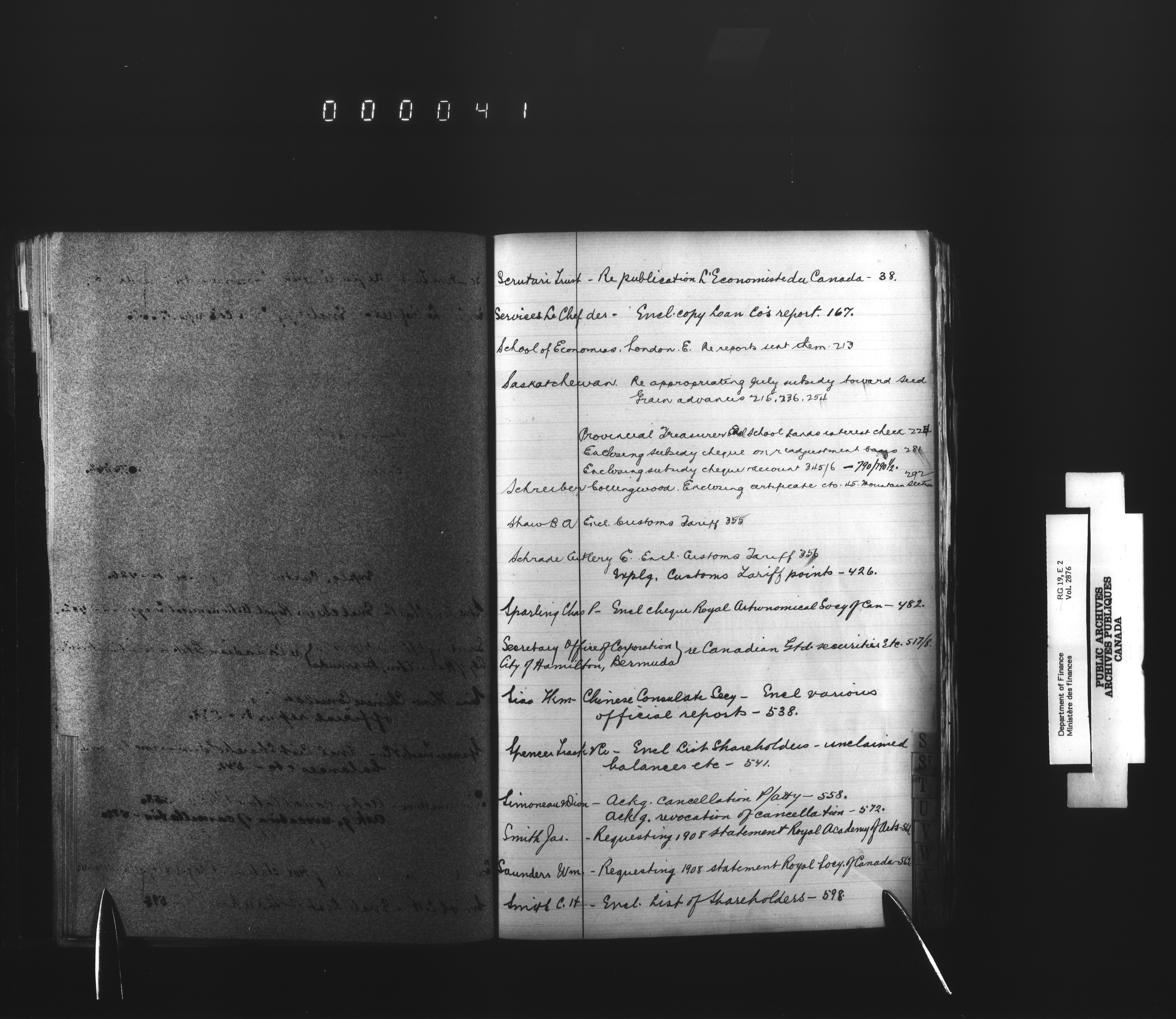 Outgoing correspondence of the office of the Deputy-Inspector General and Deputy Minister of Finance - 3060