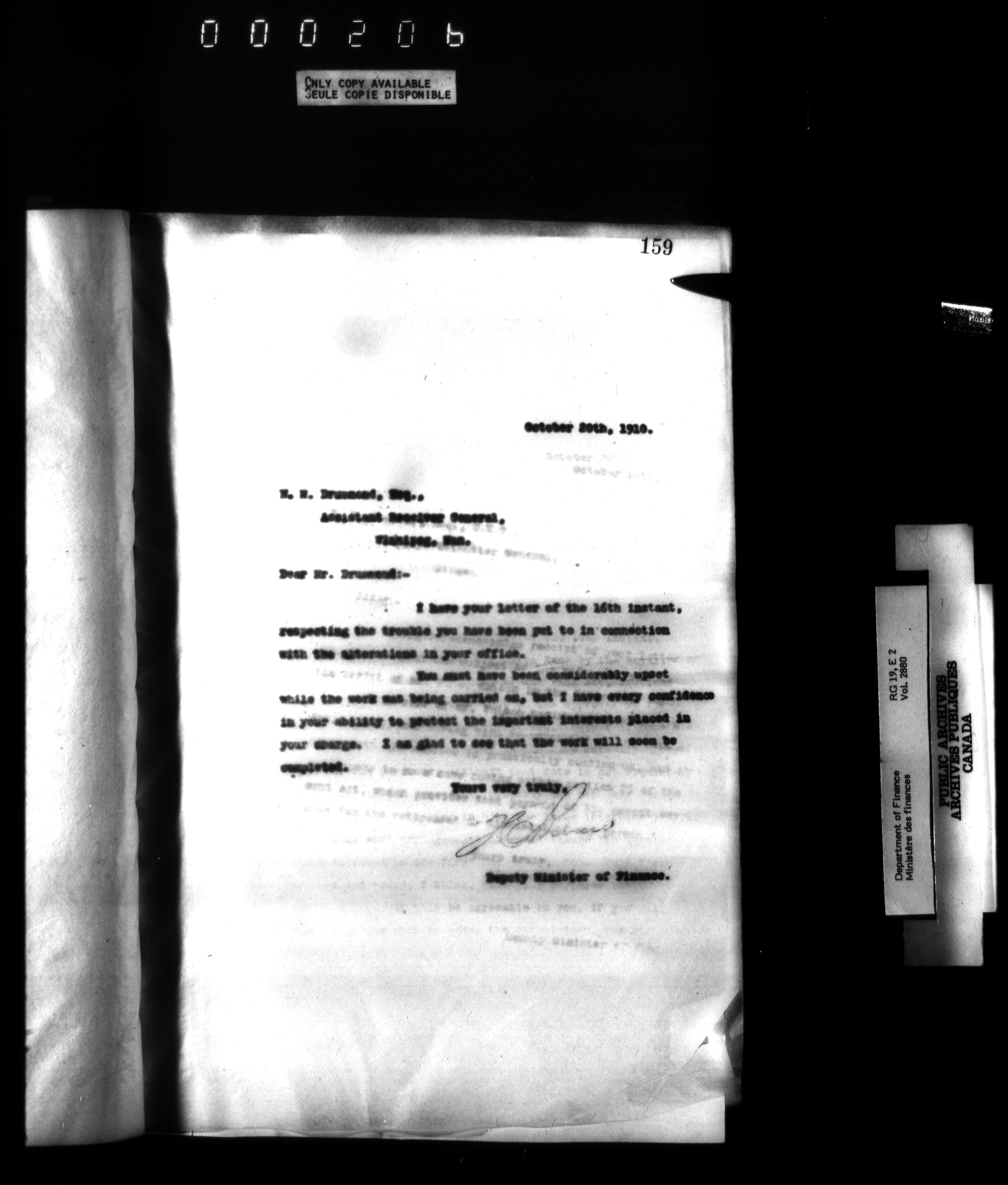 Outgoing correspondence of the office of the Deputy-Inspector General and Deputy Minister of Finance - 3063